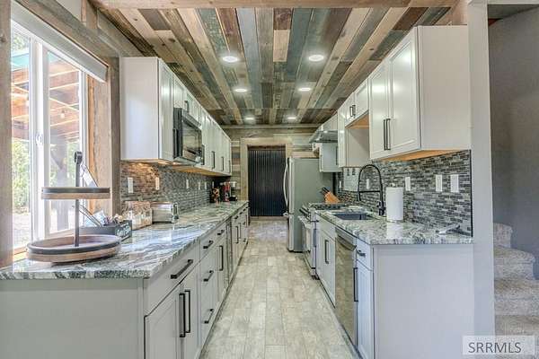 TWO SEPARATE COMMERCIAL LOTS - NEWLY REMODELED CABIN - READY TO EXPAND!!! The newly remodeled cabin features a comfortable main-floor master suite with a linear fireplace and a sleek galley kitchen with commercial-grade appliances, blending rustic charm with modern sophistication. Set on flat, usable land-cleared of wetlands and free from HOA restrictions-this rare commercially zoned property is primed for a wide range of ventures, from glamping or RV sites to event-center enhancements or boutique lodging development. Property includes access to public sewer and electrical transformers already installed on the grounds, streamlining future expansion and development. Perfectly positioned within one of Island Park's most scenic and accessible recreation corridors, the acreage provides breathtaking mountain and meadow views with excellent visibility for passing motorists. Outdoor enthusiasts will appreciate nearby world-class fishing, snowmobiling, and hiking, drawing guests year-round. With its strategic zoning, existing cabin, and on-site infrastructure, this property stands as an exceptional investment opportunity, offering immediate usability and long-term income potential in a thriving mountain destination.