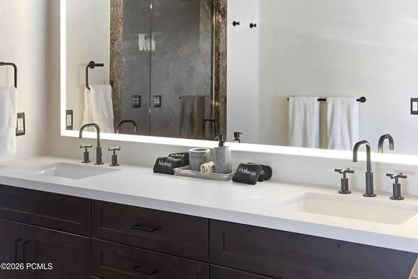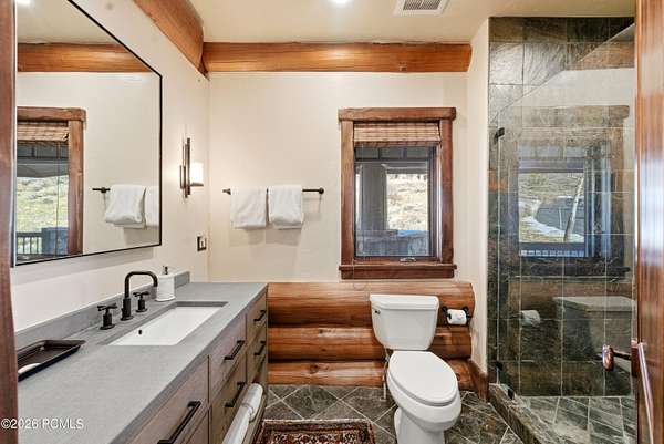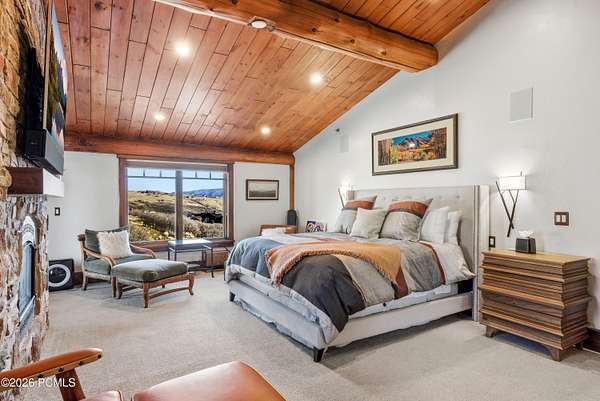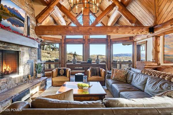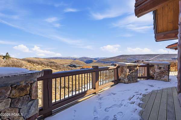 Located in Promontory, Park City's premier private club community, this legacy mountain estate offers privacy, acreage, and proximity to Deer Valley Resort, Park City Mountain Resort, and Historic Main Street. Designed for multi generational living, the six bedroom, seven bathroom residence features expansive gathering spaces, panoramic mountain views, and a floor to ceiling wood burning stone fireplace. An updated chef's kitchen with butler's pantry anchors the main level, while the lower level offers a wet bar, conditioned wine room, game areas, and a mine inspired private theater. Outdoor living spans approximately two and a half acres with wraparound decks, patios, hot tub, fire pit, bocce ball court, and a new outdoor kitchen with pizza oven. A separate guest suite with private entrance and full kitchen provides flexibility for guests or extended family. A full Promontory golf membership is available, allowing immediate access to championship golf, ski lodges, dining, fitness centers, spa services, pools, trails, and year round wellness programming.
