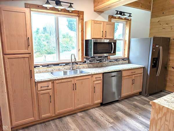 Peaceful 10-Acre Retreat Surrounded by Nature just 20 minutes from Danville, IL and 45 minutes from Purdue University. Escape to your own private haven on 10 secluded acres gleaming with nature wildlife. This unique property blends rustic charm with modern updates, featuring solid wood doors and interior walls that create a warm, inviting cabin feel. A custom metal railing with integrated lighting adds a touch of craftsmanship and character to the interior. Perfect for relaxing on a porch swing while enjoying serene sunrises. Step inside to a spacious foyer that opens into a beautifully updated open-concept kitchen and dining area. Recent updates include new paint, windows, kitchen finishes, and flooring in the kitchen, breakfast nook, and office. Every window offers stunning views of the surrounding landscape. A cozy loft provides the ideal space for a reading nook or additional storage. The home is built to last with solid 2x6 construction, spray foam insulation, and a pellet stove in the great room for efficient heating. Stay connected with high-speed internet from Joint Internet (based out of Terre Haute), making remote work or streaming a breeze. For outdoor enthusiasts or guests, there's 4 hydrants and 50/30-amp camper hookup ready to go. Features 3 BR with primary bedroom having walk in closet, 1 and a half baths with custom lighting. Large heated shop with air compressor and it's own 200-amp electric service. 15 minutes from the Badlands off road park and outdoor concerts. Detached garage has endless possibilities (workshop, guest space, studio)