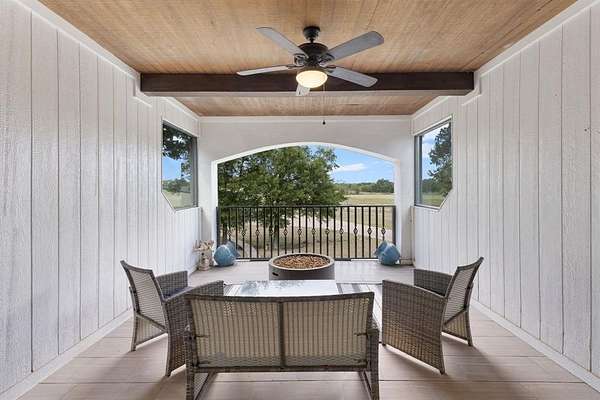 - Balcony, Covered Patio/Porch, Fence, Fire Pit, RV Hookup, Rain Gutters, Stable/Barn, Storm Cellar