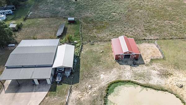 Welcome to your dream property! This custom built home lacks nothing! Attention is in the details in this custom 4 bed, 3.5bath with bonus room and covered balcony upstairs. A private 1 bedroom guest house in the 60x60 shop with covered RV parking with 30amp electrical RV connector provides plenty of space for guests to visit comfortably. Get ready to build your small homestead on this gated 10 acres with a pond and garden area with a greenhouse in place. A fully gated 90x90 area (current kangaroo yard) will keep smaller livestock safe from predators and an area for the chickens to roam. A pasture with a pond keeps the horses and cows comfortable and watered year round. Underground storm shelter and generac generators for house and shop for added peace of mind.
