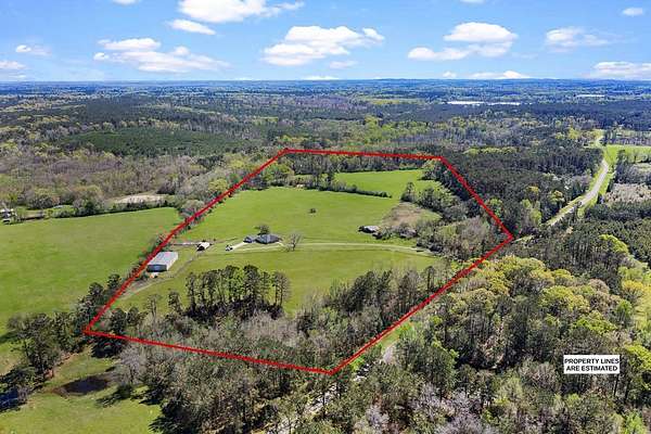Est $5,640/moWelcome to your East Texas ranch! This property consists of 53 fenced and cross fenced acres that offer a mix of pasture and timber, a pond, a 7,500 sq ft shop (150x50), an RV cover, a 2,550 sq ft 3 bedroom 2.5 bath home with a large kitchen that has tons of cabinet and counter space, a covered back patio overlooking the pasture. NEW ROOF March 2026, new survey 2026. This property has no restrictions and is located within 4 miles of Lake Murvaul and sits on both the Shelby and Panola County lines.