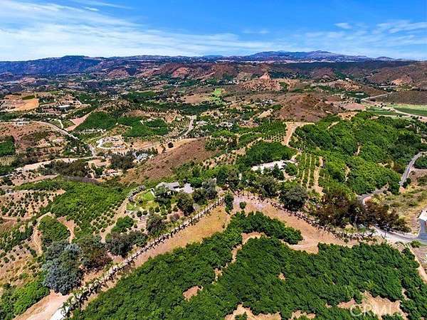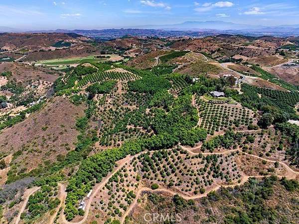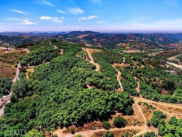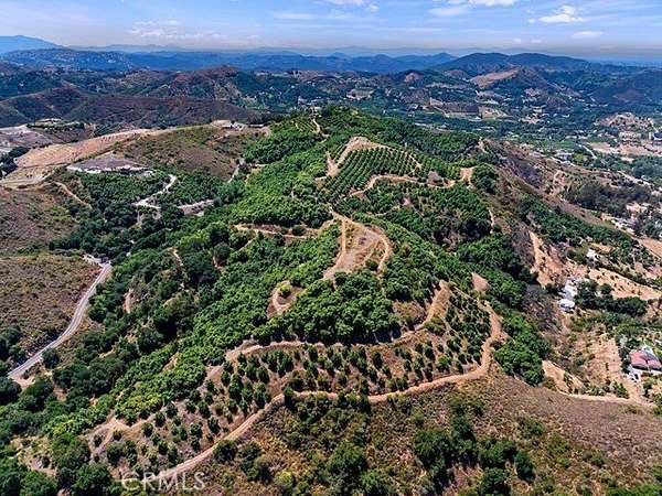 The land is beautifully adorned with thousands of mature avocado trees that create a lush, park-like landscape, enhancing the peaceful and picturesque surroundings. Gentle rolling topography invites exploration along meandering paths, showcasing the natural beauty and serenity of the property at every turn. With three wells on site, the property benefits from an abundant and valuable water resource.