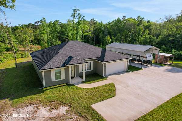 PRICE IMPROVED! MOTIVATED SELLER! Your Quiet Compound awaits at this beautiful 27 acre property! Possibly build up to 5 homes, and the first one is already there! Step inside this sweet charmer to discover a meticulously crafted interior boasting modern amenities and thoughtful design touches. Three cozy bedrooms, and a well appointed owners suite surround the light and airy living space. The open-concept layout seamlessly connects the beautiful kitchen, complete with Frigidaire Gallery stainless steel appliances and gorgeous granite countertops, to the inviting living space. Also included is a whole home water filtration system and water softener. Outside, bring all your toys! This property comes with all the perks, including covered RV parking with full hook ups 2 Kubota RTV's and a Troy Bilt ride on mower! Enjoy leisurely strolls through lush woodlands, bask in the serenity of your covered lanai, or explore nature on your ATV. Don't miss this RARE Westside opportunity! Embrace the freedom to create your own oasis while still being within easy reach of shopping, dining, and entertainment options.
