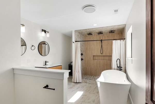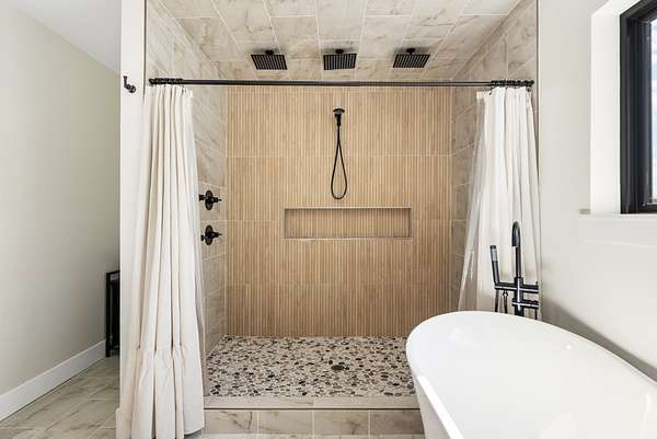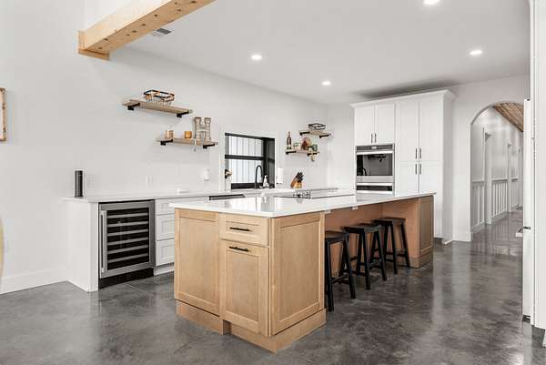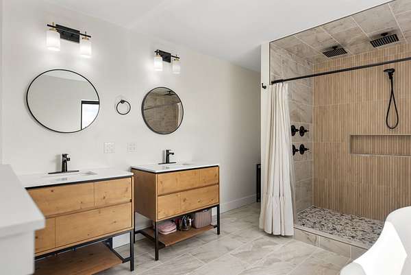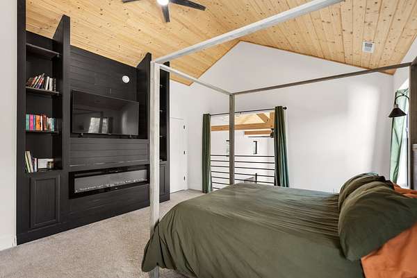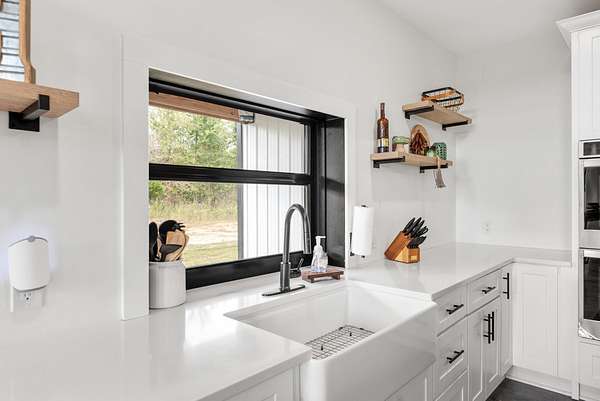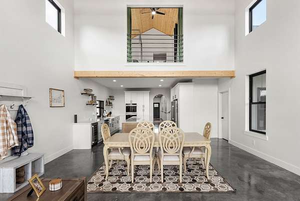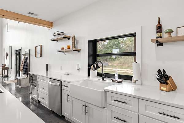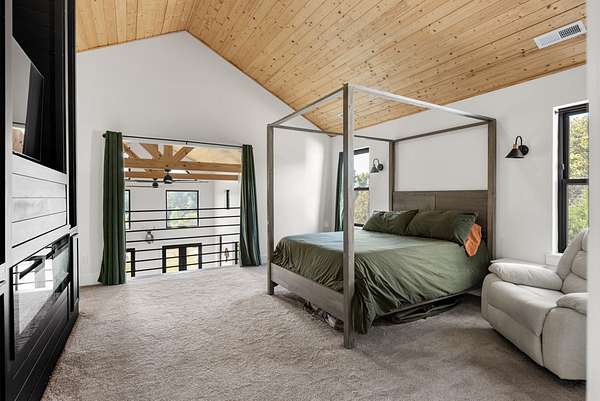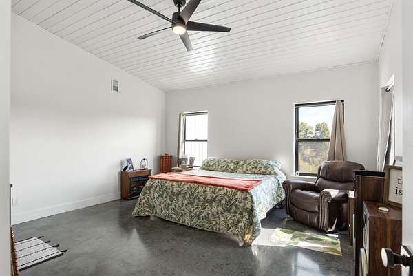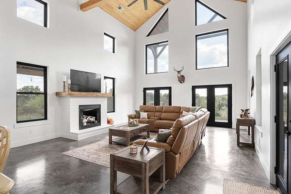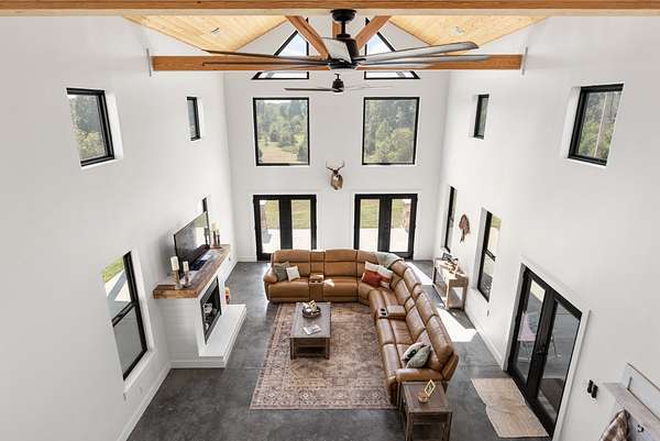Experience the perfect blend of luxury and tranquility on this stunning property featuring over 30 acres of rolling countryside. This modern home showcases an open-concept design with soaring wood ceilings in both the great room and primary suite, a cozy gas fireplace in the living room, and an electric fireplace in the primary bedroom. Huge windows throughout flood the home with natural light and frame picturesque views. The chef's kitchen is a dream with quartz countertops, double ovens, a farmhouse sink, a spacious island, and a convenient butler's pantry. The primary suite offers a spa-like retreat complete with a walk-in tile shower and separate soaking tub. Step outside to enjoy peaceful mornings by the pond and breathtaking sunsets across your private acreage. With its combination of contemporary design, high-end finishes, and serene surroundings, this property offers the perfect private escape--just minutes from town.