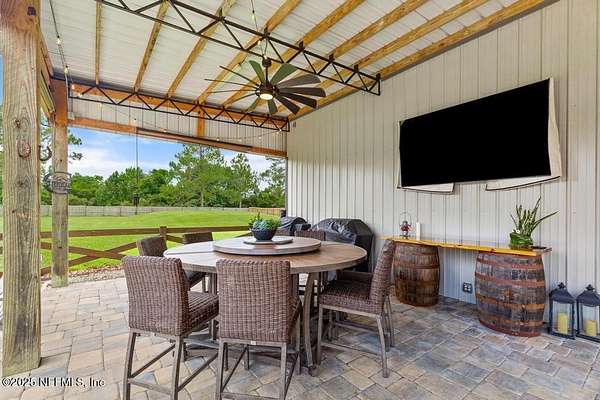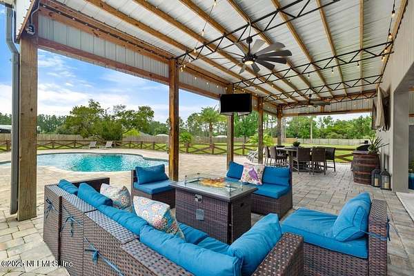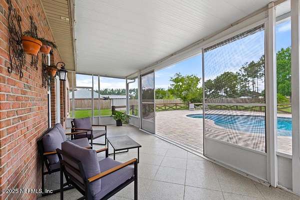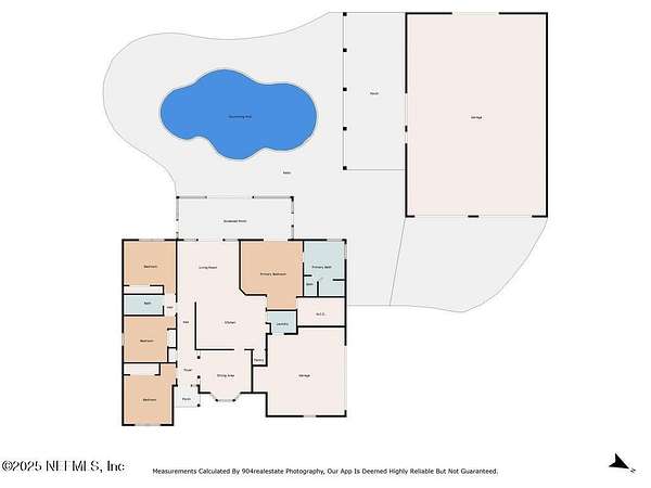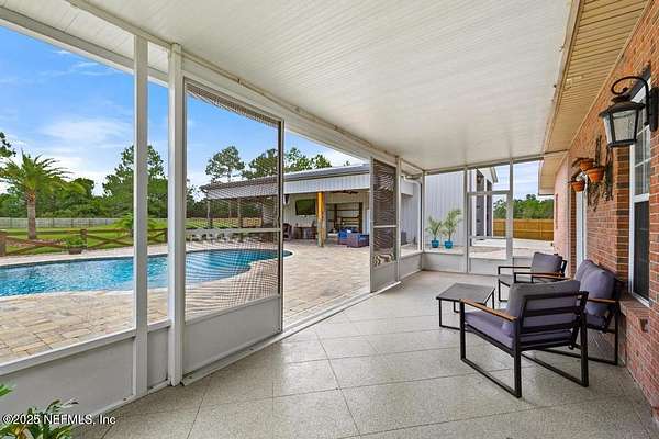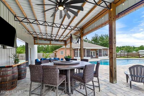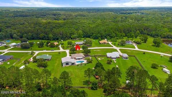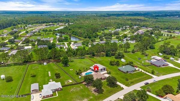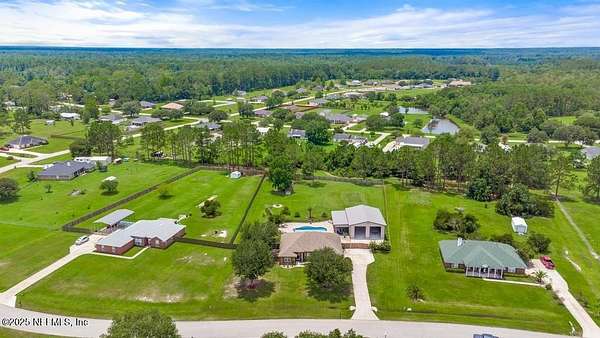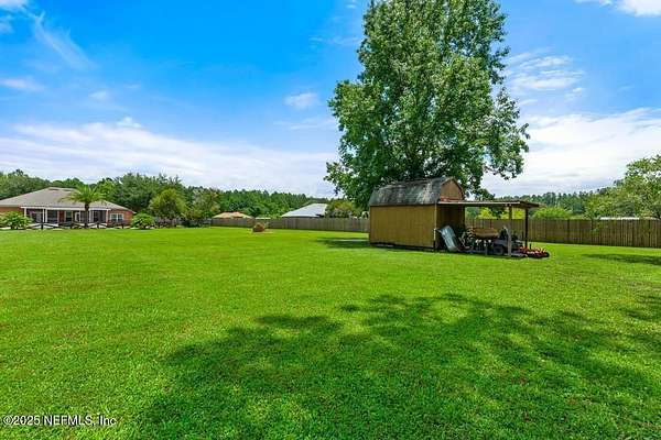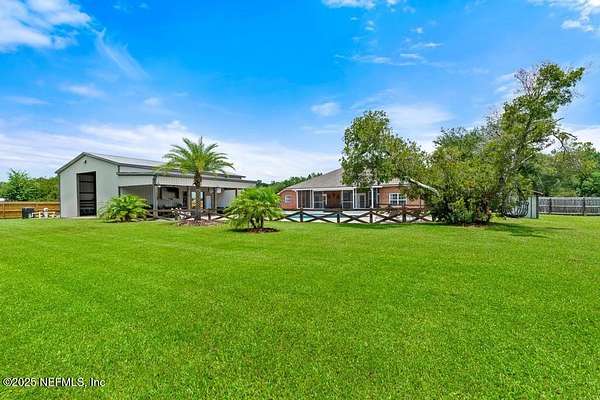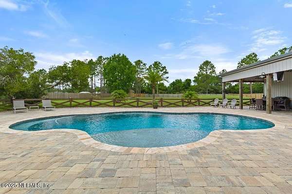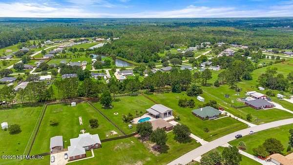 Welcome to your dream retreat in the desirable Green Meadow subdivision! This beautifully maintained 4-bedroom, 2-bath home sits on 1.57 acres and offers the perfect blend of comfort, style, and space. Inside, you'll find updated lighting and fixtures, 10-foot ceilings in the living and kitchen areas, and durable vinyl flooring throughout. The kitchen has GE slate-finish, smudge-resistant appliances and opens seamlessly into the spacious living area. Step out back to your private oasis featuring 2,600 sq ft of pavers, a screened porch, and a stunning 27' x 39' heated and chilled freeform ionized pool with a sun shelf and umbrella holders. Ideal for entertaining, relaxing, or hosting the whole crew! Bring all your toys! The massive 36' x 50' detached garage includes (2) 14' roll-up doors (front), a 14'' back exit for easy pull through and a 16' x 40' lean-to for even more space. Overhead storage in the attached garage. Roof replaced in 2019. Home is equipped with LP gas for the stove, dryer, and tankless water heater, all connected to a 200-gallon Wi-Fi-enabled auto-refill gas tank. Newly remodeled master bathroom and plenty of parking make this home a true gem inside and out. Low HOA