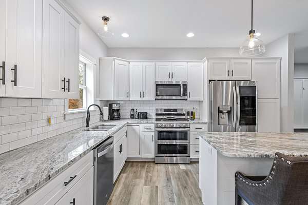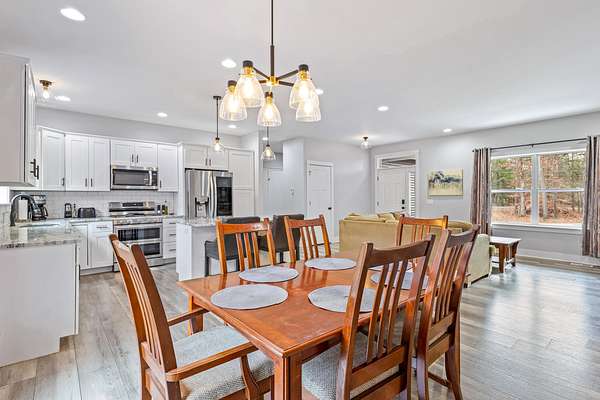 Built in 2022, this beautifully finished home in Fruitland Township offers approximately 2,600 sq ft of finished living space on a private, wooded 2.42-acre lot. Located just a few miles from Duck Lake State Park and the shores of Lake Michigan. Inside, you'll find quality features throughout, including a HALO whole house air purifier, granite countertops, soft-close cabinetry, and sliding glass doors from the dining area leading to a spacious deck. The private primary suite includes its own en-suite bathroom. Main floor laundry room and a large mudroom off the garage provides functional everyday storage. The outdoor features are just as impressive, with a stamped concrete patio, fenced backyard, and inground irrigation system. Car enthusiasts or hobbyists will appreciate the finished attached 3-stall garage as well as the finished detached garage, offering ample space for vehicles, tools, or recreation. Sale is contingent upon seller secu