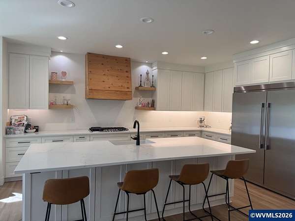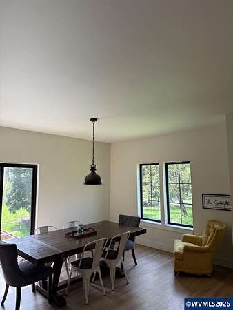 Willamette Riverfront Estate | Modern Farmhouse Elegance on 2.31 Acres with Private Dock, Shop & future ADU Potential. This 5 bedroom with an office space and 3.5 bathroom with 3,713 sq feet was completely torn down to the basement floor and rebuilt in 2023. Privately situated with 125 feet of river frontage with its own private dock, community boat ramp, and a rare blend of seclusion and natural beauty. Exposed architectural beams with a chef's kitchen makes the entire property a dream come true. Spanning approximately 3,713 square feet, the home is masterfully designed to balance grand-scale entertaining with intimate everyday living. Soaring vaulted ceilings, exposed architectural beams, and expansive living spaces are bathed in natural light, creating an atmosphere of understated elegance. At the heart of the home, the chef’s kitchen is a statement in both form and function, featuring premium finishes, an oversized island, and a fully appointed butler’s pantry designed for seamless hosting.The primary suite is a true sanctuary—generously proportioned and thoughtfully appointed with a spa-caliber wet room, complete with a deep soaking tub, walk-in shower, and an expansive custom closet. Throughout the home, bespoke details and unexpected design elements—including a custom-built slide—offer a distinctive blend of refinement and personality.Outdoors, the estate unfolds into a world of possibility. A substantial 1,600-square-foot shop provides exceptional versatility, while existing infrastructure—including dual wells, septic systems, and electrical meters—offers a rare opportunity to create a guest residence or ADU, ideal for multi-generational living or private income potential. The grounds invite a curated micro-farm lifestyle, with a chicken coop and ample space for gardens, orchards, or vineyards.Perfectly positioned within close proximity to Salem, Independence, and Albany, the property offers convenient access to fine dining, boutique shopping, and the acclaimed wineries of the Willamette Valley—while maintaining the privacy and tranquility of a true riverfront escape.A rare offering where design, land, and lifestyle converge—crafted for those who expect nothing less than exceptional.