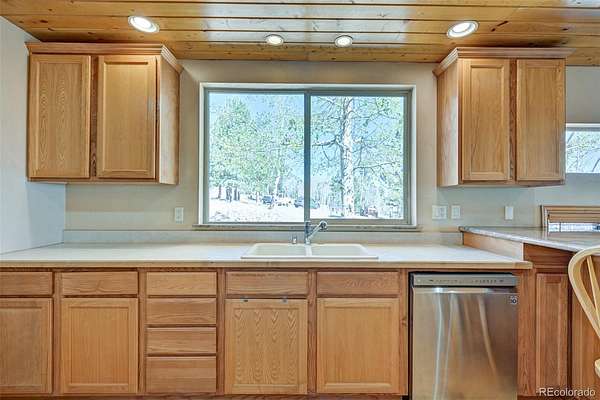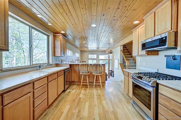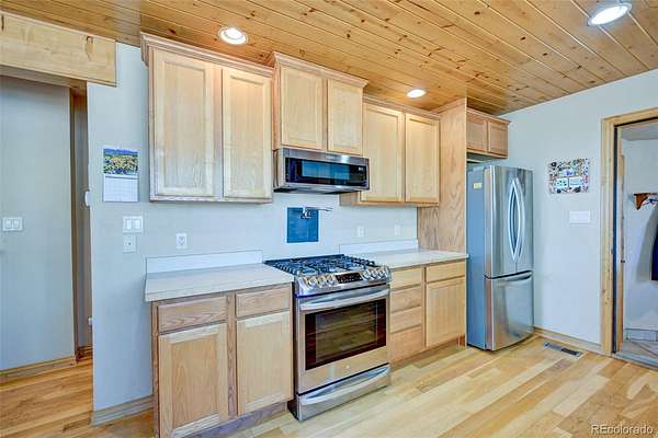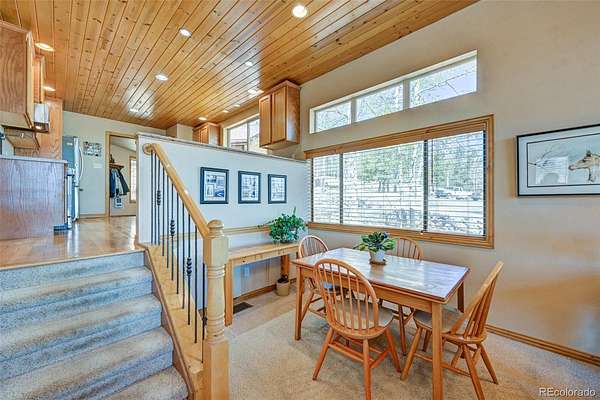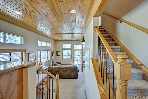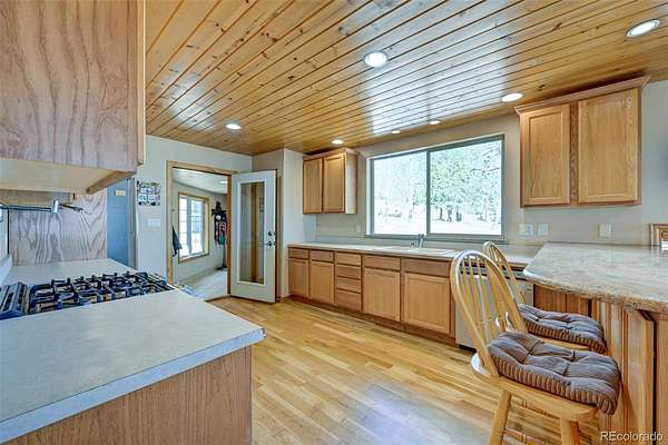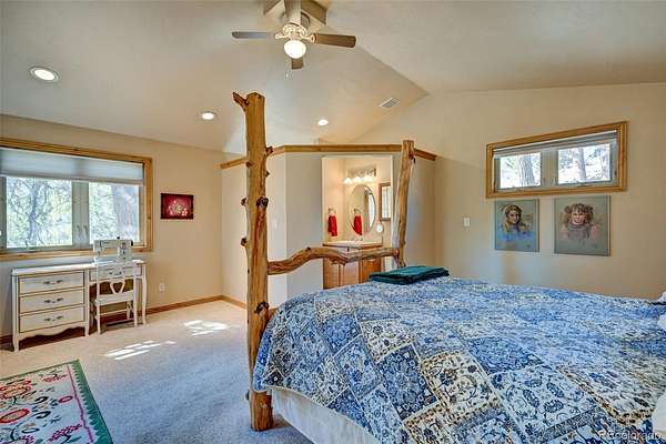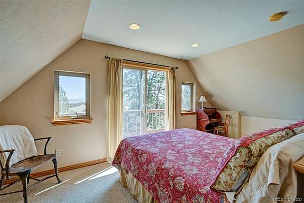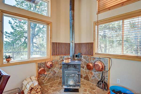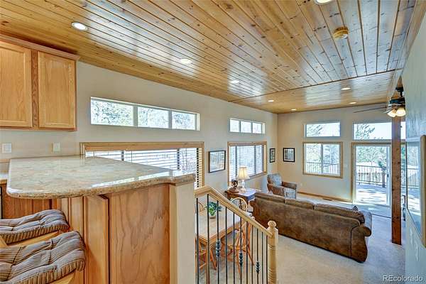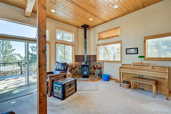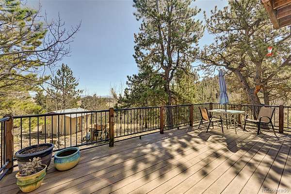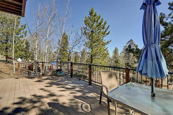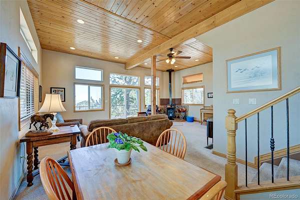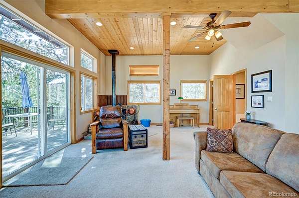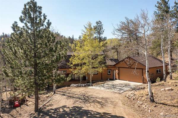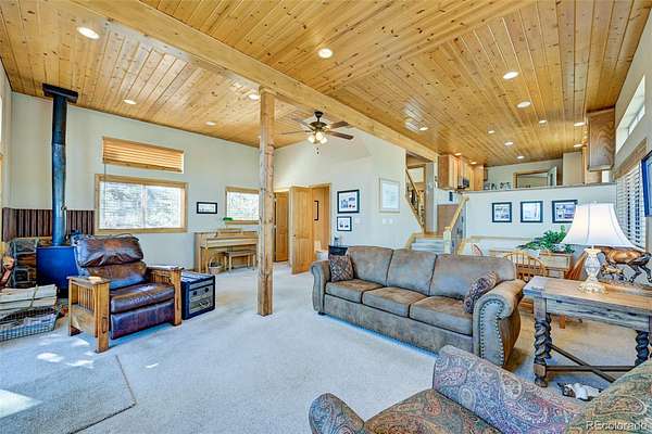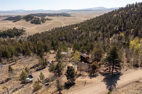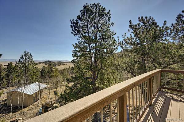 Cozy mountain retreat nestled in the aspen and pine trees on 5 beautiful acres of Colorado paradise! This comfortable home features two bedrooms, plus bonus room, and two and one half baths. You will notice the tongue and groove vaulted pine ceilings, hardwood flooring in kitchen, and oversized primary bedroom with en-suite bath. The incredible windows in the living room are designed to capture the natural light and for being able to watch the abundant wildlife that frequently roams the property and a variety of birds and squirrels. A cozy woodstove will keep you warm on the fall and winter evenings. There are three decks on the home that are great for privacy and entertaining. The two car garage has plenty of space for storing your toys or starting a hobby. The entry mudroom is a nice touch for keeping everything tidy and clean in the home. Ranch of the Rockies HOA includes central trash service, dog park, pavilion, and a stocked fishing reservoir for all property owners and guests. Colorado Springs and Denver are within two hours and there is easy access to HWY 285/24. National Forest Access is within walking distance. You can enjoy hiking, biking, fishing, rafting on the Arkansas River, and exploring all within minutes of home. This is a very special destination in the heart of the Colorado Rockies. The property is gorgeous. Come check it out.