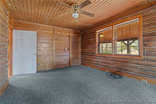 Tucked away on two private acres, this one of a kind log cabin at 447 Blackstone Dr offers a peaceful setting that immediately feels like home. From the moment you arrive, the wraparound porch invites you to slow down and take in the surroundings. It is the kind of space made for quiet mornings, relaxed evenings, and enjoying the changing seasons. Inside, the home blends rustic charm with comfortable, everyday living. The three bedroom, two bathroom layout is both functional and welcoming, with spaces that feel warm and connected. The fully finished basement adds valuable living space and offers flexibility for hosting guests, hobbies, or simply spreading out, while still feeling like part of the home. Outside is where this property truly stands apart. Sitting on two acres, there is room to enjoy privacy, explore the land, or create a lifestyle that fits your needs. The detached two car garage provides ample space for vehicles, storage, or projects, adding both convenience and versatility. This is not a home you can fully appreciate from photos alone. It needs to be experienced in person to understand the craftsmanship, the setting, and the feeling it offers. If you are looking for something special and truly unique, this is a home worth seeing.