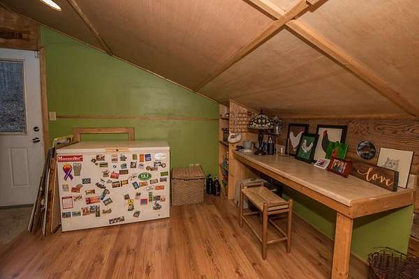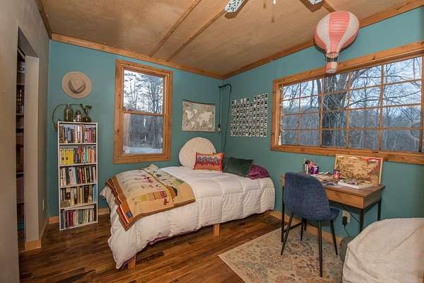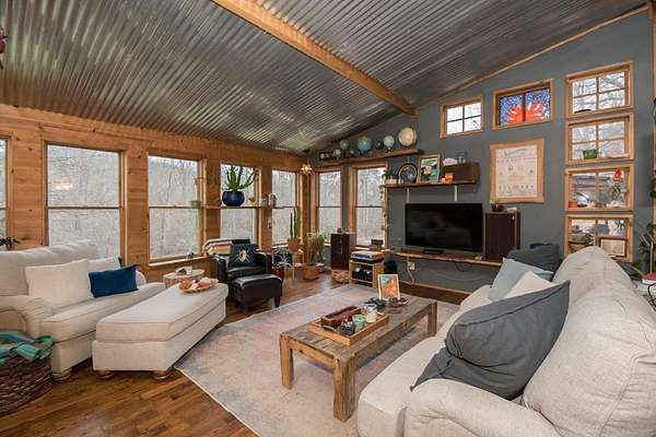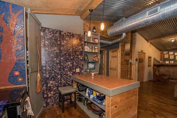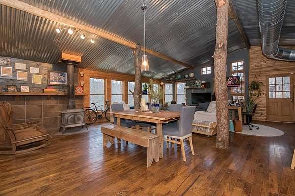 Est $1,435/moEclectic design meets peaceful rural living! This unique custom built home with an open floor plan, sits on just over 5 acres of beautiful wooded land. This one of a kind property features 2 bedrooms, 1 full bathroom, and laundry on the first floor for added convenience. A private upper level offers a 3rd bedroom with an open closet and outdoor access, creating a cozy retreat. The main level showcases pine wood walls in select areas and warm hickory flooring throughout. Throughout the home, you'll find stunning custom mosaic tilework that adds character and artistic charm.
