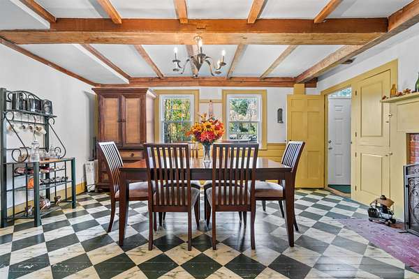 “Maplewood Farm” – a truly exceptional antique Colonial set along a scenic country road on 14 beautiful acres. Ideal for a small farm, horses, or simply enjoying the peaceful country setting. Timeless character shines throughout with wide pine floors, brick fireplaces, and fine moldings, while updated systems provide modern comfort and convenience. The spacious country kitchen features a large pantry, open dining area, and an antique wood cookstove. Formal living and dining rooms offer classic gathering spaces, while a versatile rear addition provides endless possibilities for entertaining, guests, a home office, or potential in-law suite. Outside, open fields, historic stone walls, and mature apple trees create a picture-perfect setting. The impressive 36' x 48' timber-frame barn is equipped with water and electricity and includes three horse stalls, a sheep pen, room for additional animals, and a walk-up loft. A second antique barn with a car bay adds even more charm and functionality. Abutting Fox State Forest and conveniently located just minutes from U.S. Route 202 and approximately 25 minutes to Concord, Maplewood Farm is a rare offering that beautifully blends historic New England charm with modern-day living.