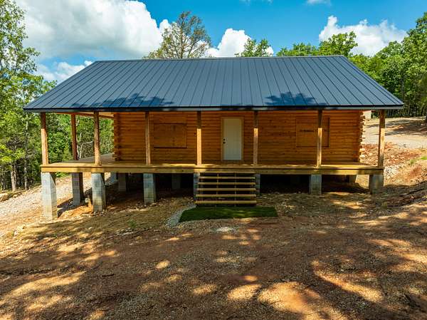 This is truly one of the best locations in the Ozarks to build your forever home or retreat. The heavy lifting has been done by licensed professionals--now it's time for you to make this genuine log home your own and live the dream of Ozark mountain life, with seclusion, scenery, and access to a thriving community.