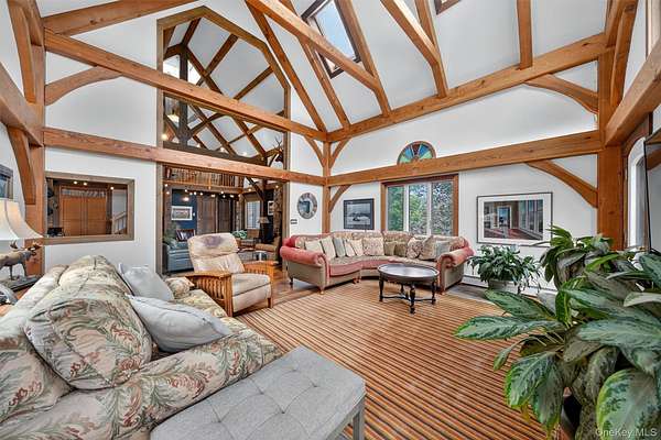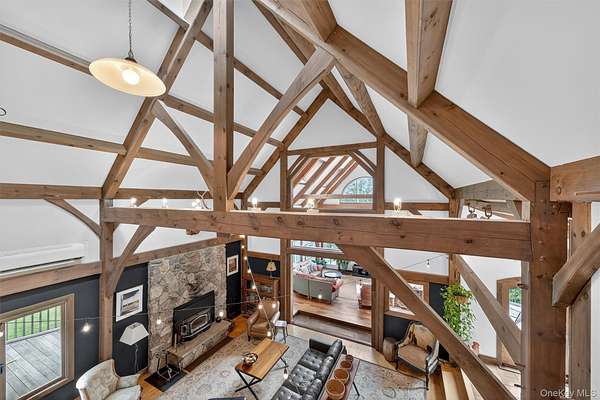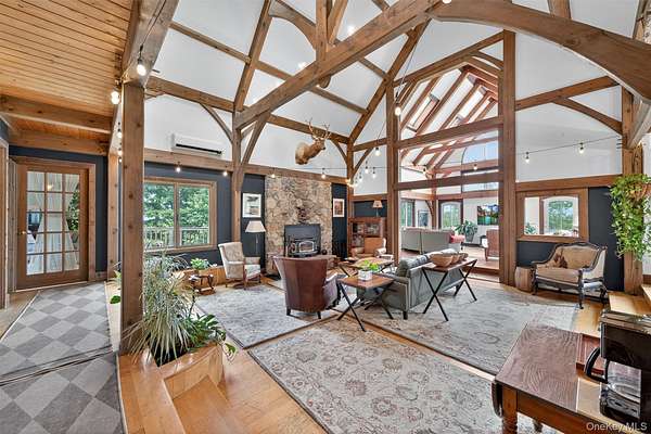 Set on nearly 9 serene, wooded acres, this custom Davis Frame Post & Beam home offers sweeping views of Pine Island, NY, a charming hamlet within the Town of Warwick. Exuding character and charm inside and out, this one-of-a-kind residence is a must-see for anyone seeking a truly special retreat.