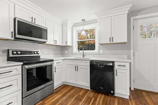Tucked away in the picturesque town of Meredith, this newly renovated 3 bedroom, 2 bath home sits on a beautifully level and private 2.58 acre lot surrounded by trees and natural beauty. Offering both comfort and flexibility, this property combines peaceful country living with close proximity to Meredith's vibrant downtown, shops, dining, and lakes. The lower level welcomes you with a bright, open layout featuring a kitchenette, spacious bedroom, full bath, laundry area, and an additional bonus room that can be used as a home office, media room, or extra sleeping space. Large windows fill the space with natural light, creating a warm and inviting feel. Upstairs, you'll find a renovated kitchen, an updated bath with shower, two additional bedrooms, and an open-concept living area ideal for entertaining or relaxing with family and friends. Every space has been thoughtfully updated with modern finishes while maintaining a cozy Lakes Region charm. Step outside to enjoy the expansive, level yard, perfect for gardening, play, or simply soaking in the privacy and peaceful setting. The lot is truly picturesque, flat, usable, and surrounded by nature. Located in desirable Meredith, this move in ready home offers the best of both worlds: a private retreat just 7 minutes from Lake Winnipesaukee, hiking trails, and all the Lakes Region has to offer.