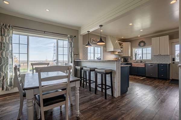 The home has been fully updated and offers the perfect country feel, with 3 main floor bedrooms along with two bathrooms. The kitchen has been upgraded with new appliances and additional seating . There is an updated sprinkler system insuring green grass through the summer. The shop is over 1200 square feet with two bay doors, and a new office suite. Whether it is the country life style that draws you, or the need for more room for horses or 4H projects, this property has been perfectly set up to accommodate.