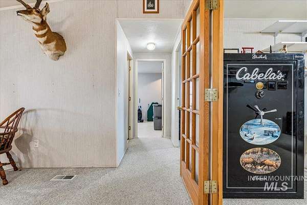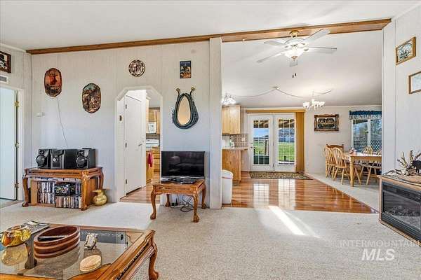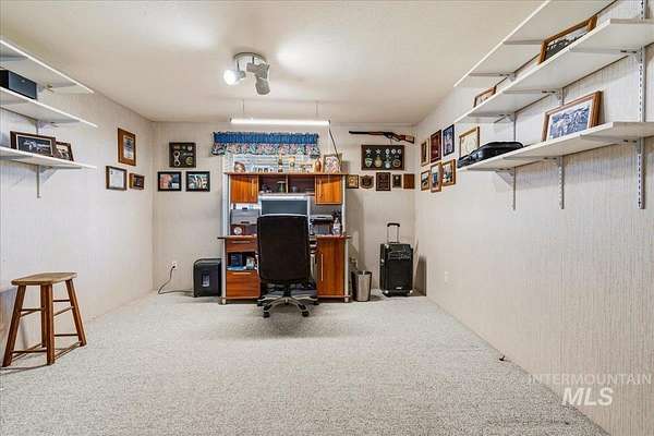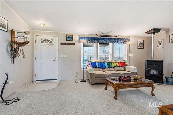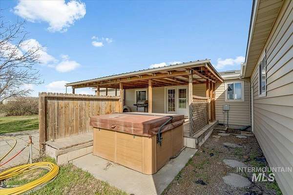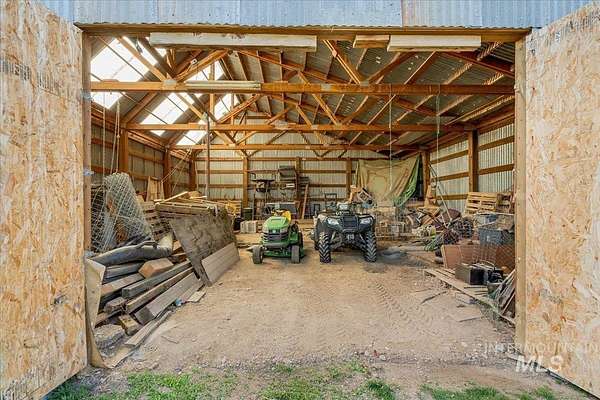 Nearly 5 Private Acres Near Mountain Home - it has it all - Barn, RV Covered Shed, 3 Storage Sheds, and a Generator-Ready Home. You won't want to miss this one! Nestled on nearly 5 private acres just outside Mountain Home, this well cared for split-bedroom home offers versatile living and abundant outbuildings. Enjoy the outdoors from the covered patio in front or out back. The split bedroom floor plan includes an office/flex room, a cozy pellet stove in the living room, spacious dining area and kitchen plus a family room. The garage with 220 power, is prewired for a generator with a new electrical panel and has a 50 amp RV plug on the exterior of the garage. Practical features include attached two-car garage, RV covered shed (12' x 30' x 12' tall), barn (32' x 30', dirt floor) with electricity, new lighting and a wired air compressor (stays with the property), and three storage sheds (10' x 12', 14' x 14', 10' x 20')-one shed is powered. The property is fully fenced and ideal for animals or hobbies, with 8 fruit trees, over 30 evergreens, and drip irrigation to each tree. Embrace country living with plenty of space and utility. A short distance to CJ Strike Reservoir, just 11 miles away, boating, fishing and recreation.