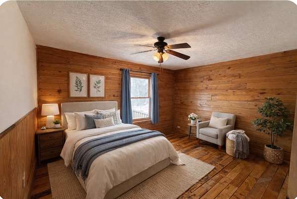 Escape to peaceful country living with this charming 3-bedroom, 1-bath log cabin nestled on 2.33 scenic acres. This rustic retreat offers the perfect blend of privacy, character, and breathtaking natural views. Relax and unwind on the spacious covered front porch, ideal for entertaining guests or enjoying quiet mornings in a rocking chair while taking in the serene surroundings. Out back, the large covered patio overlooks a beautiful treed valley with distant hilltop views, creating the perfect setting for outdoor gatherings or peaceful evenings. Inside, the home features an open floor plan highlighted by a stunning large stone wood-burning fireplace, original wood floors, and warm cabin charm throughout. Whether you're looking for a full-time residence, weekend getaway, or investment opportunity, this property delivers true country comfort. The 20x20 detached garage/shop provides excellent space for hobbies, storage, or workshop needs. Nature lovers will appreciate the abundance of local wildlife and the quiet rural setting. Don’t miss your chance to own this inviting log cabin retreat with acreage and views.