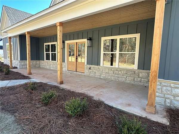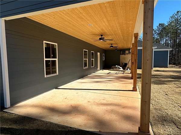 Your dream home awaits on 3.02 serene acres! This brand-new construction offers 4 bedrooms and 2.5 bathrooms with a modern, open layout designed for both comfort and style. Luxury vinyl plank flooring flows seamlessly through the main living areas, creating a cohesive and inviting feel. The kitchen is a true showpiece, featuring granite countertops, custom shaker style cabinetry, a large center island, and a walk-in pantry - all overlooking the spacious great room. Enjoy cozy evenings gathered around the electric fireplace indoors or step outside to the covered back patio, complete with a wood-burning corner fireplace, perfect for entertaining or quiet relaxation. The owner's suite provides a luxurious retreat with an ensuite featuring dual vanities, a deep soaking tub framed by a double entry tile shower, and separate his and her closets - one offering direct access to the laundry room for added convenience. Built with quality craftsmanship and attention to detail, this home offers the ideal combination of beauty and practicality. Buyers can still select colors and finishes from the builder's samples and allowances to make it uniquely theirs!