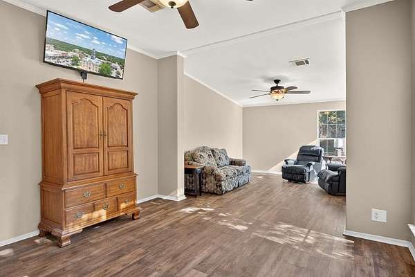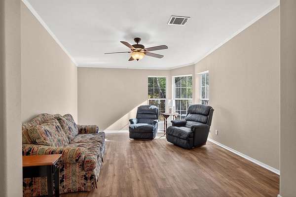 Welcome to this spacious 2300 square foot 4-bedroom, 3-bath modular home nestled on 17 serene acres. The primary bedroom features a cozy sitting area, perfect for relaxation. Enjoy meals in the dedicated dining area or work from home in the private office. A large screened-in front porch invites you to unwind while taking in the peaceful surroundings.
