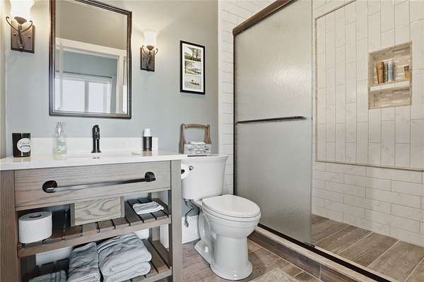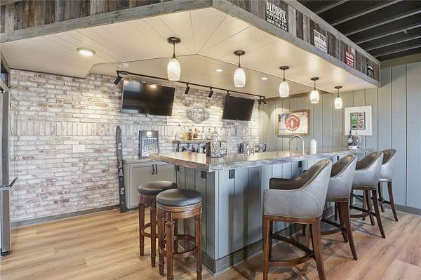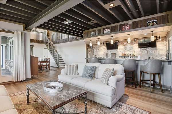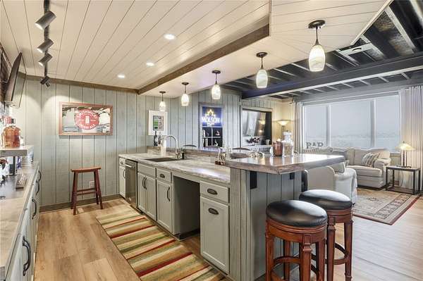 - Bar, Bedroom On Main Level, Breakfast Bar, Cathedral Ceilings, Ceiling Fans, Entrance Foyer, French Doors Atrium Doors, Great Room, Kitchen Island, Living Dining Room, Main Level Primary, Natural Woodwork, Primary Suite, Programmable Thermostat, Quartz Counters, Walk In Pantry, Wet Bar