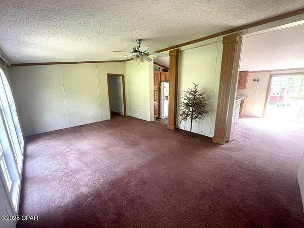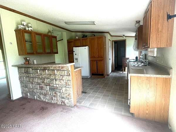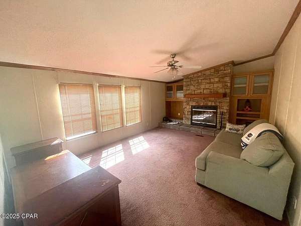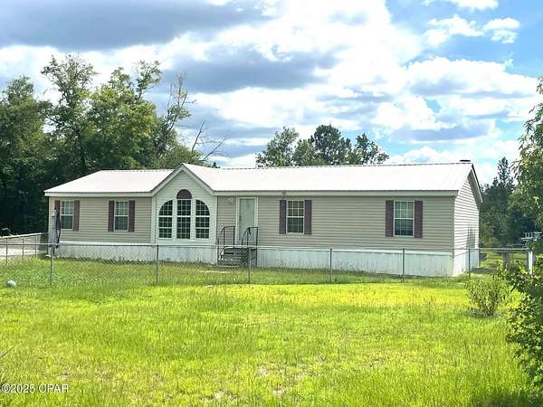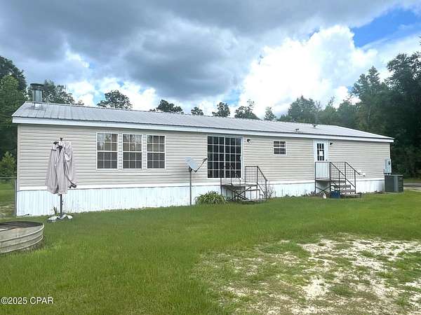 SECLUDED 3 BR/2B mobile home sitting on 4 acres. The home has a formal living room and also a large family room with a stone, wood burning fireplace, the spacious kitchen has a breakfast bar, dishwasher, stove, microwave and dining area, the split bedroom plan with the Master suite offering a separate shower, whirlpool tub and makeup vanity. The is in need of some repairs but overall in good shape. The roof was replaced in 2019, Central heat and cooling unit was replaced in March of 2019.