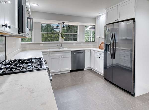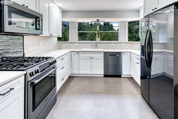 - Dishwasher, Disposal, Free Standing Gas Range, Pantry, Quartz