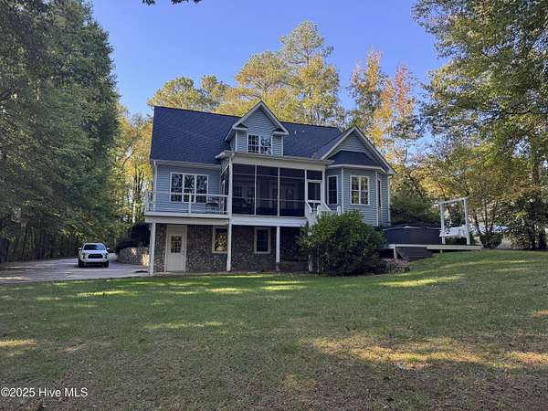 Looking some waterfront Tar River ''Magic''? Look no further! This one owner home has over 3100 square feet with an additional finished space in the basement of 327 feet. Two car oversized garage. 1.73 acre lot that transitions into your own waterfront oasis. Boat house currently houses 2 jet skis but can be converted back for a boat. Deep water at dock (13 feet). Ample outdoor entertaining space with a large screened in porch. Roof replaced 2023, HVAC replaced 2025 man level. Upstairs HVAC replaced 2022. Septic system is for a 3 bedroom home, but current owner use home as a 4 bedroom. Owner offering $10,000 allowance for flooring update, master bathroom remodel or any updates buyer should choose. If privacy and seclusion interest you, this is the one. Call today or be sorry tomorrow. Live with purpose and joy everyone.