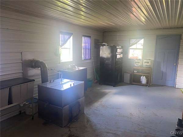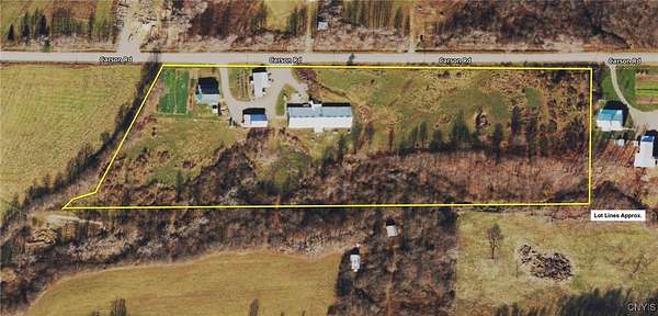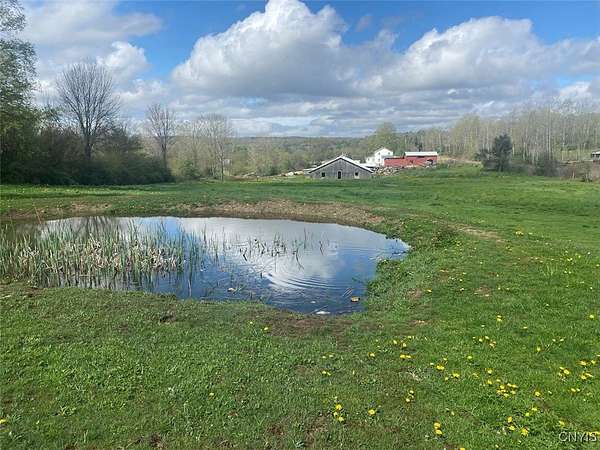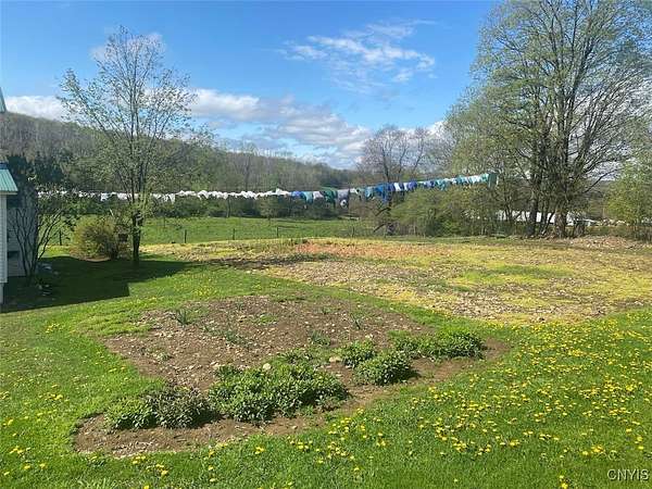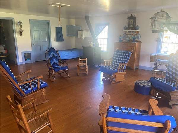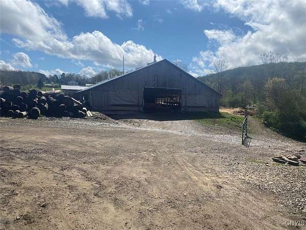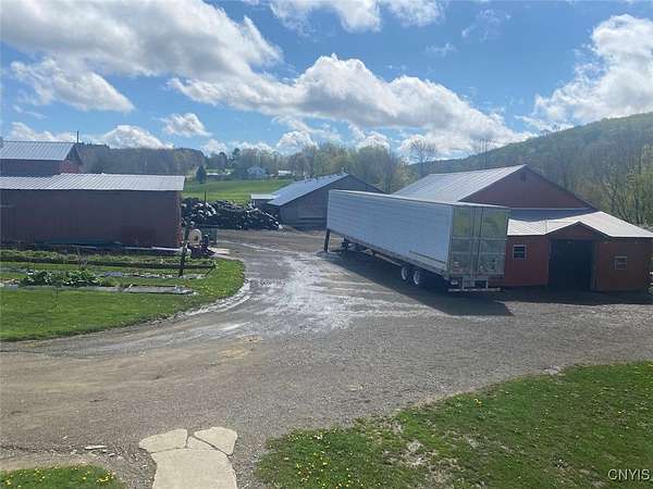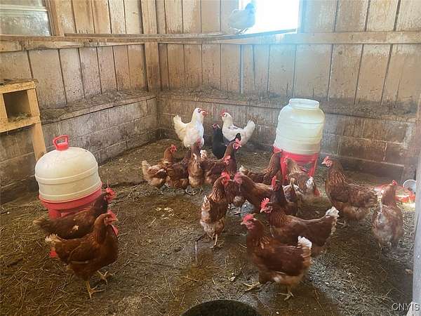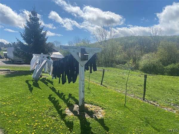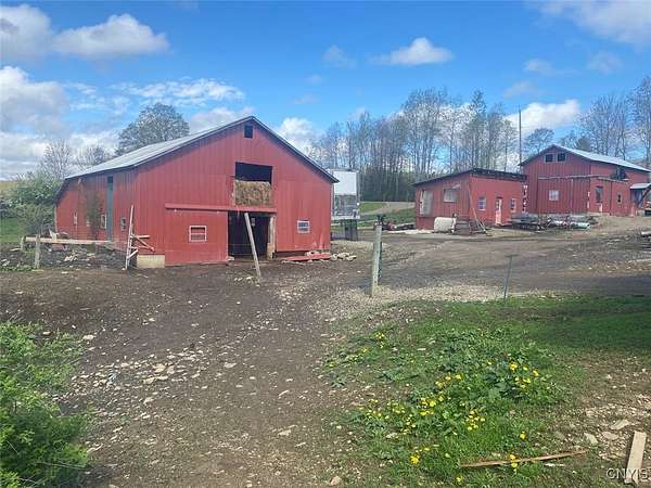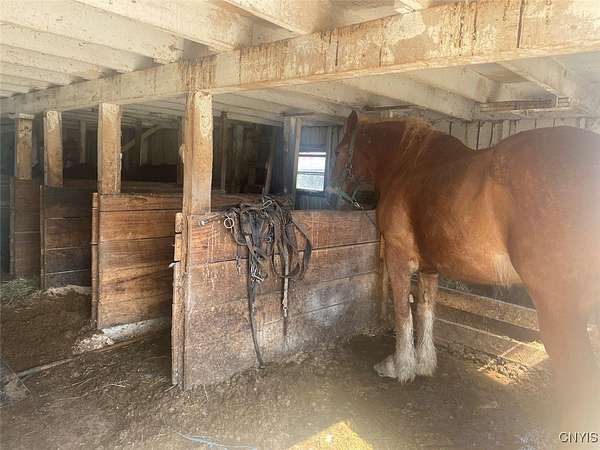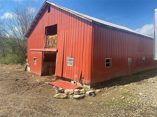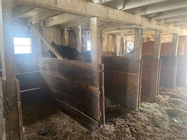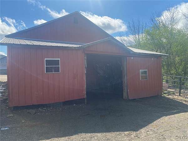 This 10.87 acre property is an Amish homestead with barns and a pasture and has great potential to be a hobby farm located in Allen NY, Allegany County. This 5-bedroom Amish home offers a functional layout with a covered porch and open views. The first floor features hardwood floors and ample natural light through numerous windows. The eat-in kitchen includes a pantry and space suitable for family meals. One bedroom is located on the first floor, along with a mudroom and laundry area. Upstairs are four additional bedrooms and extra rooms that can be used for storage or as office space. The full basement has a walk-out to the yard. The property includes fruit trees, berry plants, and a garden area ready for planting. Outbuildings include a barn with stalls and a box pen, a former veal barn now partially used as a sawmill that could potentially be a horse arena, and a fenced pasture. There is also a small workshop with a storage area. Water is supplied by a spring and a cased well. This property offers a solid foundation for a working or hobby farm. Located on a maintained year-round road with electric and fiber optic service at the roadside. Gillies Hill State Forest is just a short drive away. All rights convey.