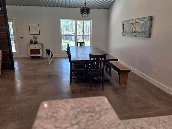 Nestled on 40 beautiful acres in East Texas, this exceptional 2,800-square-foot home offers the perfect blend of comfort, privacy, and resort-style living for the whole family. Tucked away at the end of a winding driveway shaded by mature trees and blooming dogwoods, the property welcomes you into a peaceful setting that feels like your own private retreat. Inside, the three-bedroom, two-and-a-half-bath home features an open floor plan designed for both everyday living and entertaining.