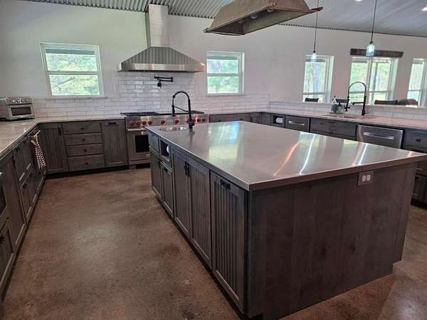 Spacious living and dining areas flow seamlessly together, anchored by a gourmet kitchen outfitted with commercial-grade appliances, ample workspace, and the kind of layout every home chef will appreciate. Whether you're gathering with family for the holidays, hosting weekend guests, or simply enjoying the serenity of country living, this property is made to be enjoyed. The separate guest house adds even more flexibility, offering comfortable accommodations for extended family, visitors, or potential rental opportunities. With 40 scenic acres to explore, this East Texas property has the feel of a private family resort, a rare opportunity to own a place where memories are made, nature surrounds you, and home feels like a getaway every day.