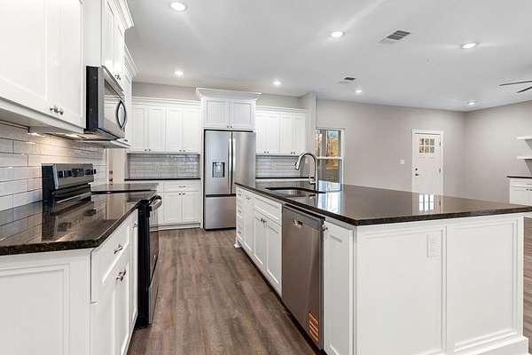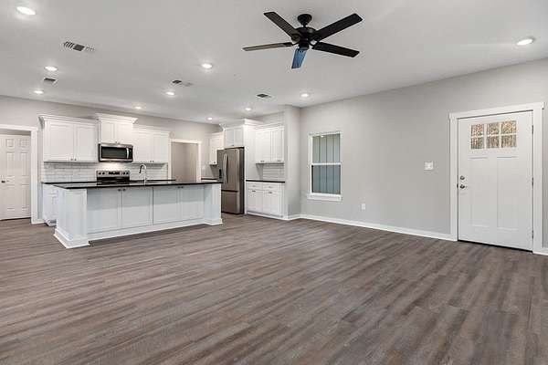 - Blinds, Breakfast Bar, Ceiling Fan(s), Kitchen Island, Open Floorplan, Pantry, Primary-Lower Level