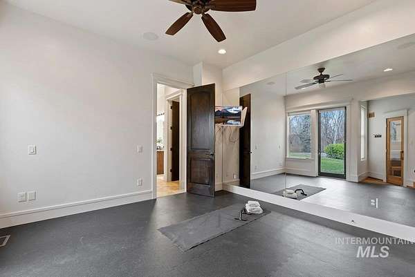 Rare 2-acre waterfront estate located in the gated community of Laguna Pointe, offering unmatched privacy and natural beauty. Surrounded by water and open space, this tranquil setting features panoramic views of a 43 acre lake, 30+ acres of common area, and private island accessible by paddleboard or kayak. Thoughtfully designed for both luxury and recreation, the home includes an outdoor kitchen, firepit, private beach, RV parking, direct gated access to the Boise Greenbelt and Boise River. The expansive primary wing offers a spa-like retreat with a private sauna and gym. Exceptional layout, rare acreage, and an irreplaceable location-- this is truly a one-of-a-kind opportunity to own a legacy property in Idaho.