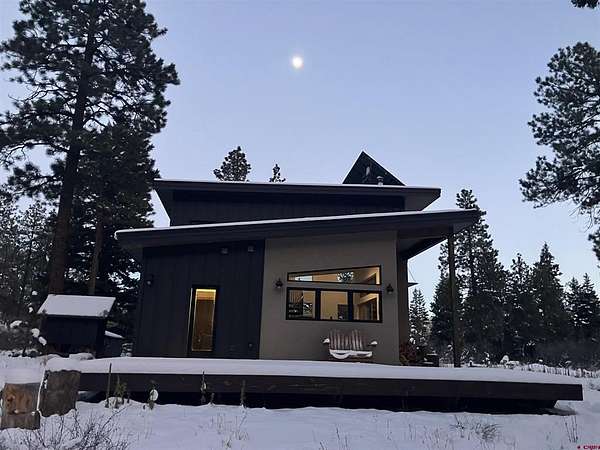 Sara Staber, Keller Williams Realty Southwest Associates, LLC, C: 970-759-5033, Sara@SaraStaber.com, DurangoColorado.com: ~~ Experience the unexpected!! This striking contemporary cabin is tucked back in the woods on 3 acres ... yet only 10 minutes (less than 5 miles) to Purgatory resort. Feel immersed in nature but with quick access to resort amenities, and plentiful trails in the nearby Forest Service and Weminuche Wilderness. The 220 degree views, through the surrounding trees, encompassing the Hermosa Cliffs around to the Needles Mountains, including the 13,970 foot Pigeon Peak. ~~ The layout is stylish in its simplicity .... All dominated by the great outdoors! The 960 sf home lives big. Full height energy efficient windows in the living room, from floor to 17 ft vaulted ceiling, provides immense southern exposure and passive solar gain warming the attractive stained concrete floor. The lay out is open to the kitchen with a stunning river-cobble, smooth granite countertop. And gives access to a both a covered grill porch and large west facing deck for lounging and sunset views. The modern full bath is also on the main floor. Plus access to the single car attached garage, which also has in-floor heat. Upstairs is a huge open loft with handsome hardwood oak floors and big doors going out to an east facing deck for sunrise over the mountain peaks. ~~ The electricity for the home is provided by 12 solar panels and a state-of-the-art Outback inverter with accompanying battery storage. As back up there is a propane 12 KW Kohler generator, rarely used. How about not having an electric bill?! Heat is in-floor radiant, on both the main floor of the house and garage, supplied by a high-efficiency propane Lochinvar boiler that also delivers the domestic hot water. The septic system was built to accommodate a three-bedroom home. Sample the delicious cool, clean well water from 460 foot deep. Lakewood Meadows Road Maintenance plows and maintains the roads for the $1000. annual fee, there is no active association.~~ ~~ Imagine waking up in this peaceful retreat having coffee on the upper deck watching the sun rise. Going out for a hike, bike, climb or ski in this playground you call home and coming back to relax in the hand-crafted wood burning outdoor sauna watching the wildlife pass through. Aaaah - own a bit of paradise!