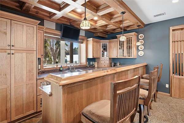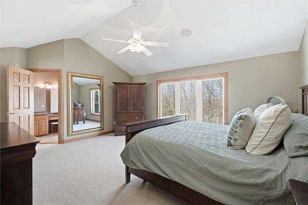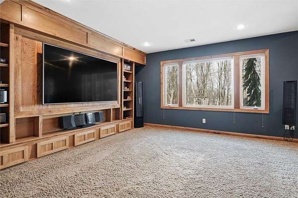 Custom-built and lovingly maintained by its original owner, this beautifully appointed 5BR/4BA country retreat blends abundant acreage, thoughtful design, and exceptional craftsmanship. Perched at the edge of a private pond, tranquil views provide the perfect backdrop to unwind after a long day. A wraparound white oak porch/deck spans the back of the home, offering incredible views, abundant wildlife watching, a cozy family fire pit, and a hot tub to enhance outdoor living and relaxation. Superb quality is evident throughout this picturesque home, thoughtfully designed with an exquisite blend of formal and casual spaces. Interior highlights include a home office, spacious sun-filled living room with oversized windows, and a chef-inspired kitchen featuring granite countertops, double ovens, cooktop, hood, and walk-in pantry—ideal for everyday living and entertaining. The lower level offers a bar and billiards area, home theater with surround sound, and home gym, creating versatile spaces for recreation and hosting. A 4-car garage provides generous storage and convenient access to the lower level. Tasteful upgrades and custom features are showcased throughout, including durable built-in shelving, crown molding, and a lower-level bar accented with a coffered ceiling detail. Recent improvements include a new