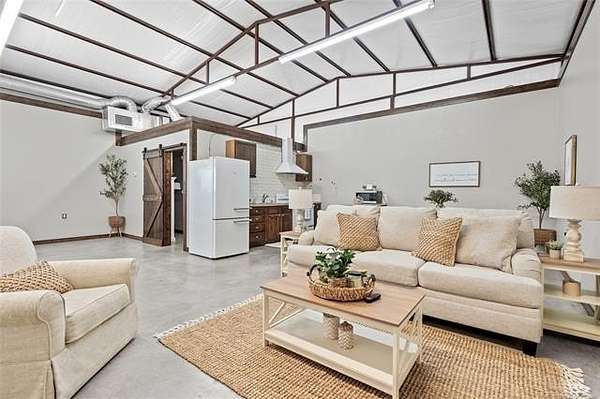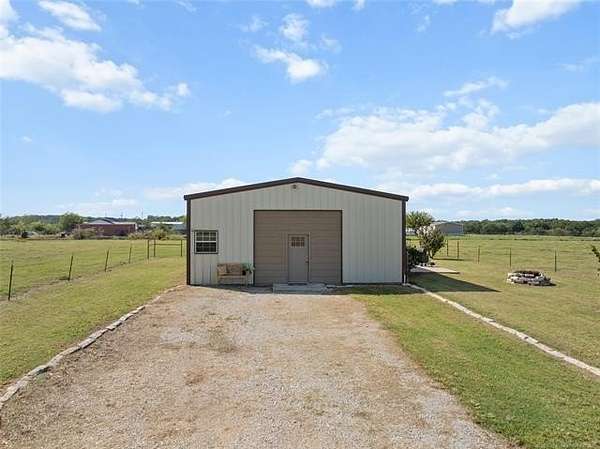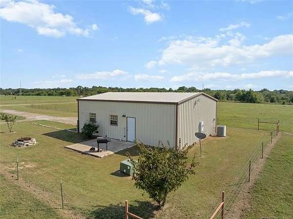 Located on the outskirts of Lone Grove, tucked away on 114.73 acres(mol) of green pastures and mature pecan trees, sits 4480 Memorial Rd-a peaceful country retreat with endless potential. The property includes a well maintained barndominium built in 2014, featuring 2 bedrooms, 1 full bathroom, and approximately 1,200 sq ft of living space with an open concept layout connecting the kitchen, dining, and living areas. This home offers comfortable living as-is or would make an excellent temporary residence while you build your dream home on the property-and later serve perfectly as a ranch-hand or guest house. Outside, you'll find a scenic mix of open pasture and mature tree cover, with the majority being pecan trees. The seller estimates around 500 pecan trees, offering an ideal opportunity for supplemental income. The ranch is fully fenced and features three ponds and a 230-ft deep solar-powered well for livestock watering. Historically, the property has produced around four tons of Bermuda per acre, highlighting its strong agricultural value. With multiple potential income streams, beautiful scenery, and an ideal location just outside town, this property offers a rare combination of productivity, peace, and potential-ready to welcome its next owner home.