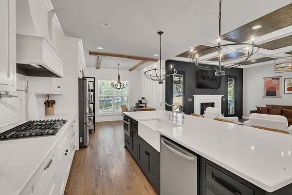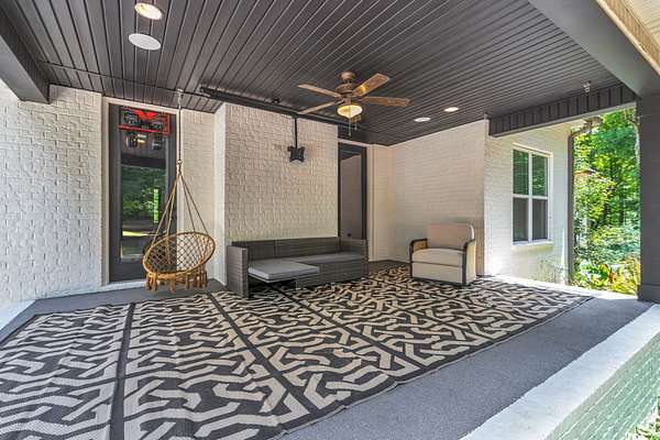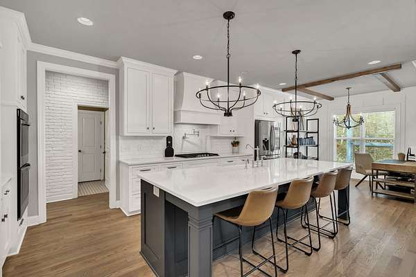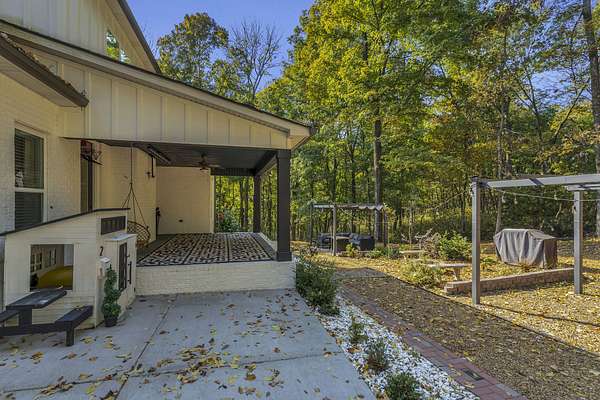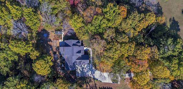 Welcome to your dream home Nestled on 5 acres! This stunning all-brick home seamlessly blends modern elegance with cozy charm. Step inside to discover soaring vaulted ceilings creating an inviting atmosphere. The spacious kitchen is a culinary delight featuring a Gas Cook-top and Double Oven and luxurious quartz countertops along with a convenient walk-in pantry for all your storage needs. Gorgeous lighting fixtures give the home an upscale feel, hardwood floors through the entire downstairs. Relax in the cozy living room with Coffered ceilings by the gas fireplace or retreat to the primary bedroom a spa-like tile shower, and a soaking tub. Features such as an in-law suite on the main level, oversized laundry room, walk-out attic storage, tank-less water heater, whole home water filter enhance everyday convenience. Relax in the backyard with the covered porch or enjoy the greenhouse with electric. The home is pre-wired for cameras, security, and has a dedicated theater room.