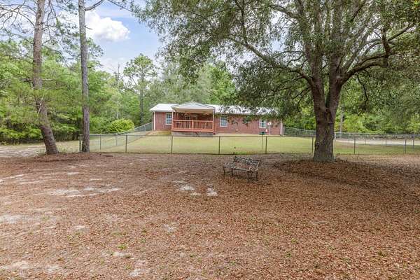 COUNTRY LIVING AT ITS BEST! Beautiful ALL BRICK 4 bedroom 2 bathroom with METAL ROOF on nearly 4 ACRES of LAND in north Crestview! This lovingly maintained property offers both space and privacy while being close to the convenience of north end shopping and schools. As you approach the home you are guided back to the home by a private gravel driveway nestled through the trees. The front of the home offers a covered front porch, perfect for rocking chairs. As you enter the home, you are greeted by a small tiled foyer with plenty of space for an entry table. Off to the right, you will find the homes formal living room and dining room with wood laminate flooring to entertain your guests. At the end of the foyer, you are guided to the homes main living area. The spacious family room