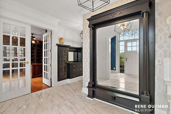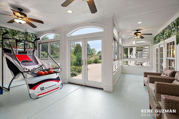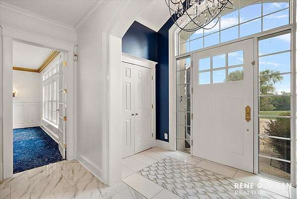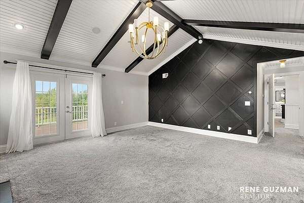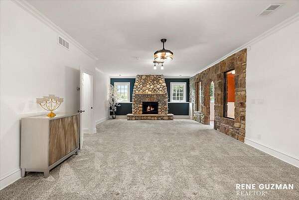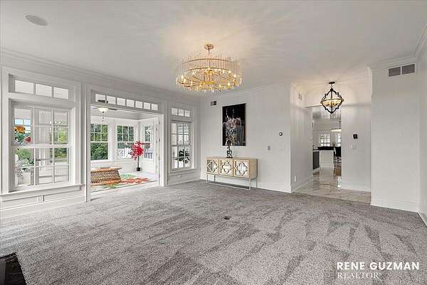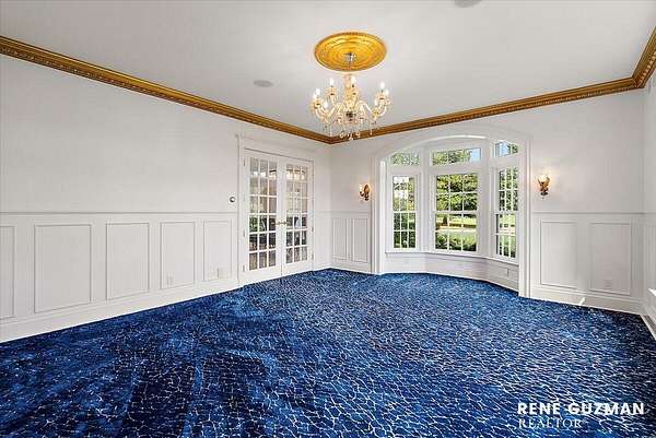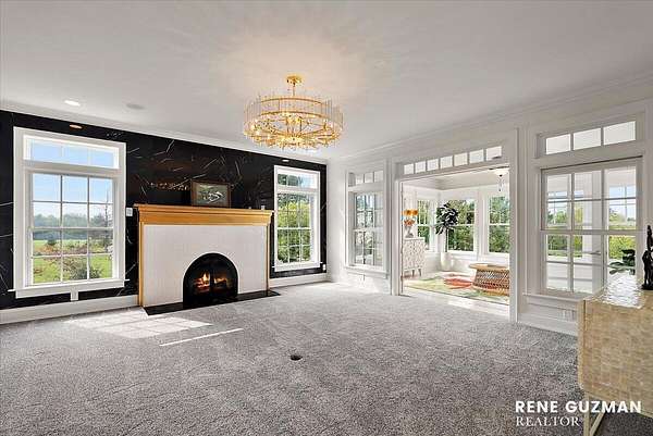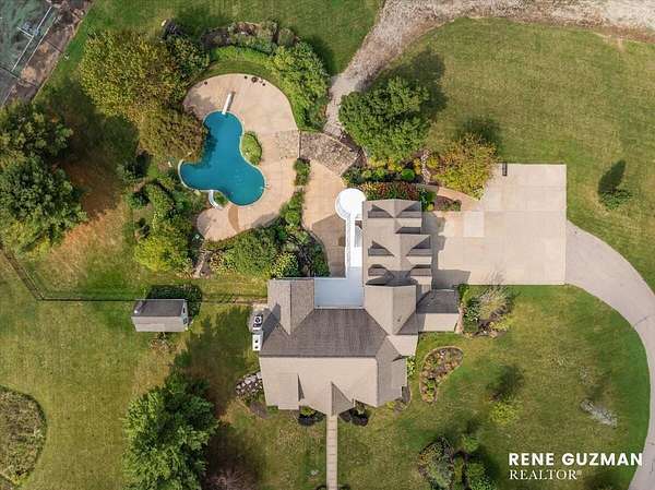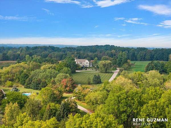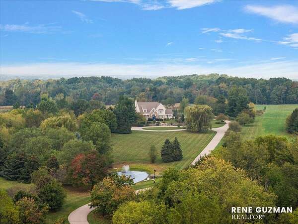 Immerse yourself in the epitome of grandeur at this breathtaking 17.82-acre country estate, where unparalleled luxury intertwines with serene natural beauty. Host lavish galas in your own resort-style pool, complete with a private bathroom and changing pavilion, or unwind on expansive wraparound terraces, where panoramic vistas of rolling hills and a private pond with a mesmerizing fountain captivate your senses. Inside you will find elegant chandeliers and cutting-edge modern lighting on every floor. The main floor unveils a state-of-the-art chef's kitchen with granite countertops and premium Viking appliances. The primary owner's ensuite is a vision of indulgence, featuring an expansive wardrobe with an atelier loft, a balcony, and a palatial spa inspired bathroom. The lower level boasts a second gourmet kitchen, a billiard lounge, a private cinema, and space for a gaming area. The property also includes a spacious 40x50 pole barn and a dedicated paddock area, ideal for livestock.