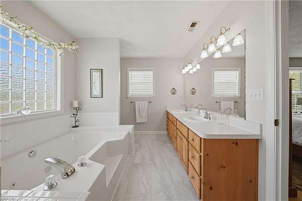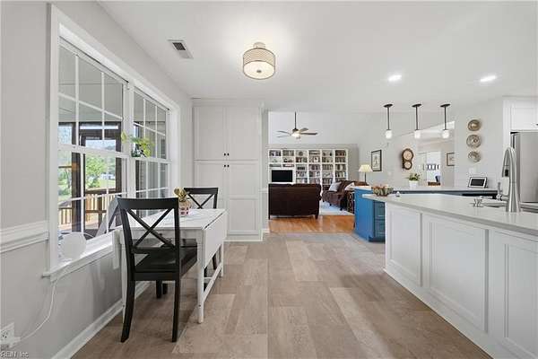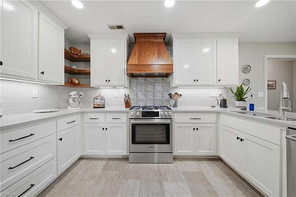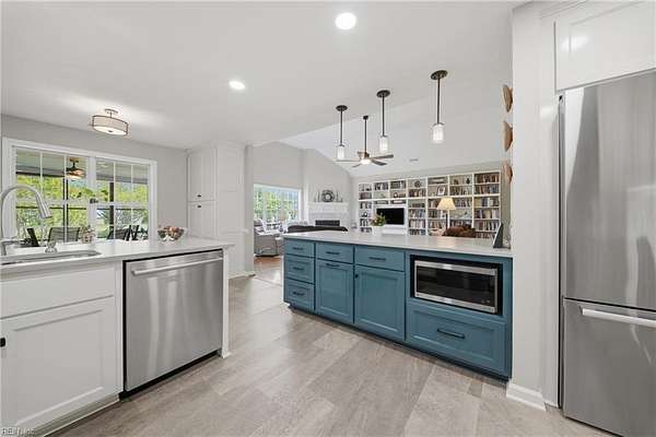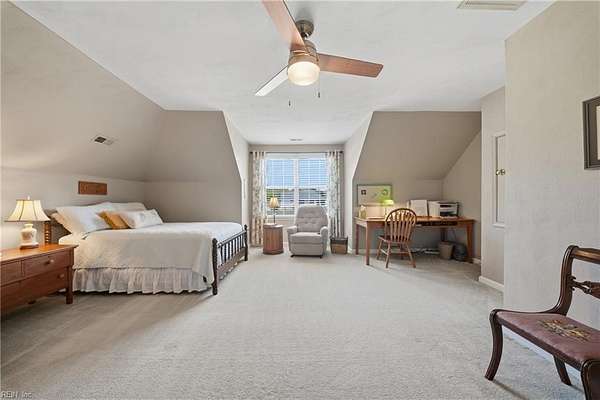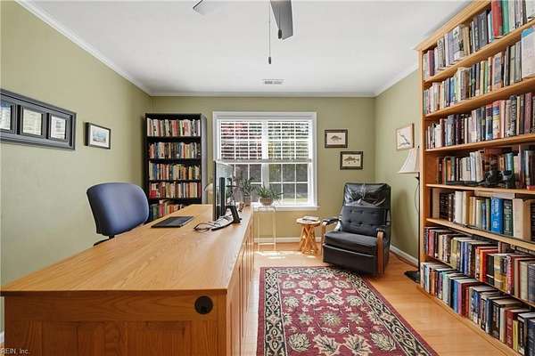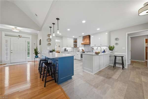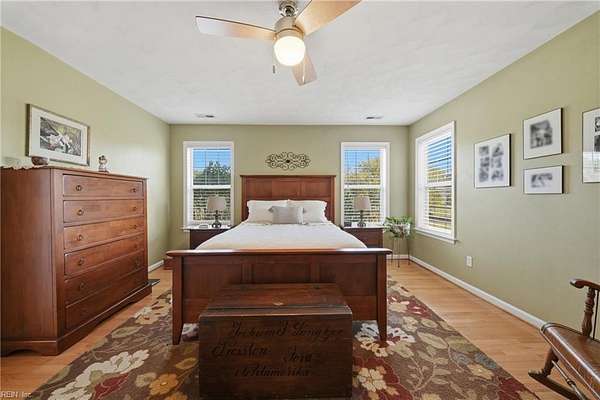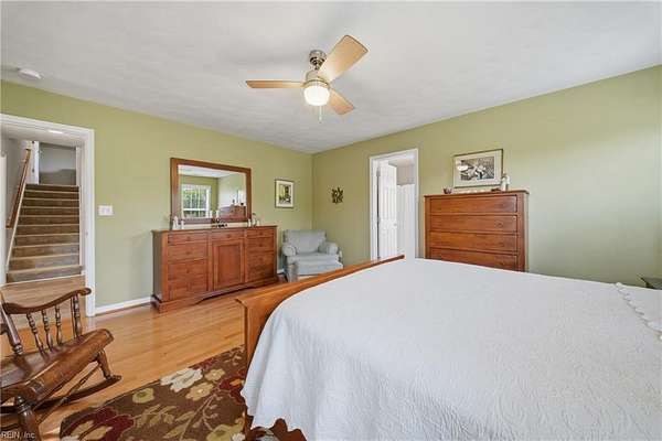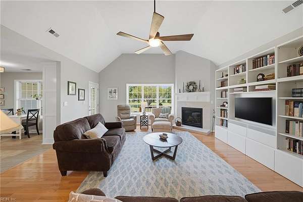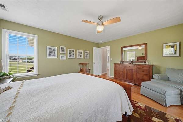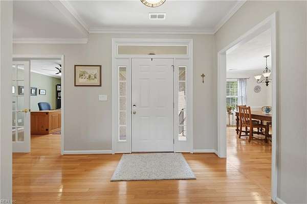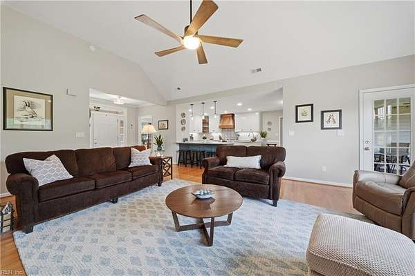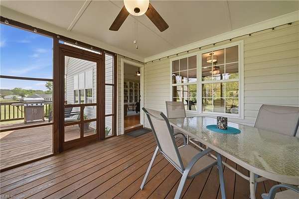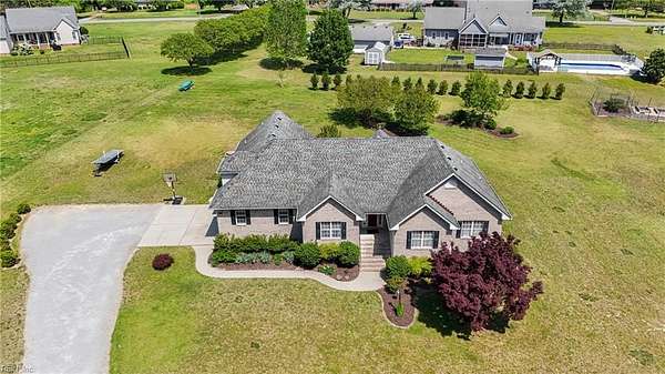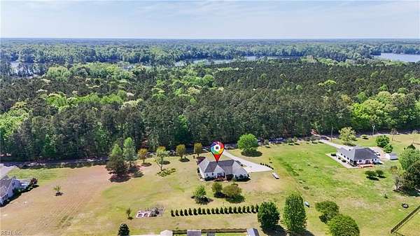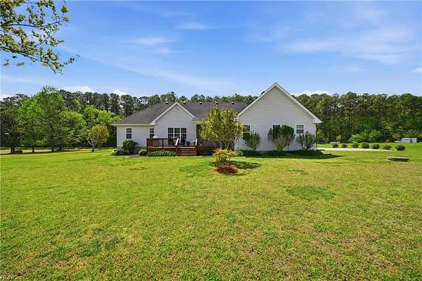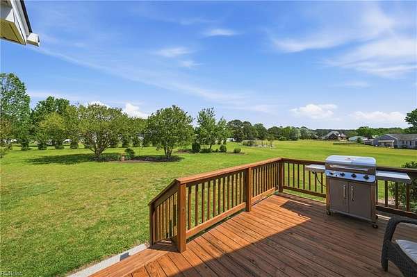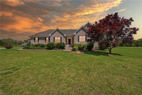 Stunning custom built home on nearly two acres in a private setting near Western Branch Reservoir and Lake Prince. This beautiful home boasts an open floor plan and gourmet kitchen with custom cabinets, quartz counters, and Bosch appliances. Gleaming hardwood floors throughout and a great room with vaulted ceilings and Nordik gas fireplace with new quartz surround and custom mantle. Versatile and large FROG or 4th bedroom with easy access to abundant attic storage. Screened in porch and back deck to enjoy the great outdoors, birds, and nature. Beautiful landscaping and trees, two raised beds and high producing blueberry bush, plus a large garden area. Enjoy boating and fishing via the community boat ramp. This home is tucked away in a quit neighborhood with easy access to shops, restaurants, hospitals, and other amenities. Don't miss this superior home in a stellar location!