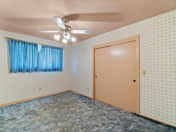 - Carpeting, Ceiling Fan, Partial Curtains, Shades/Blinds, Vinyl Flooring