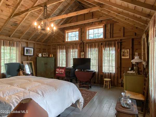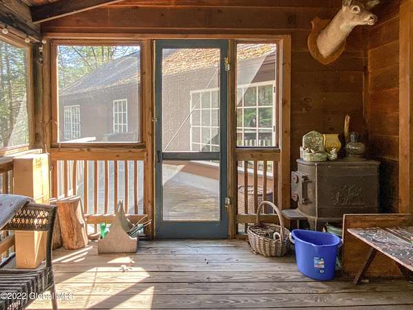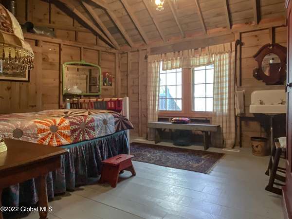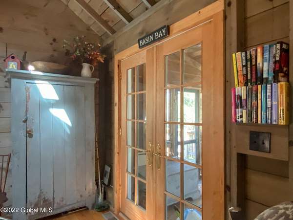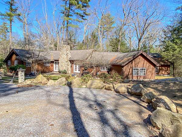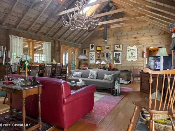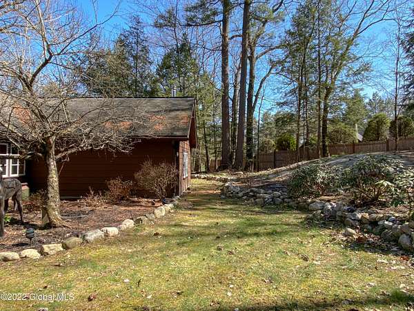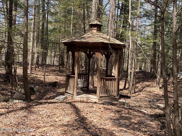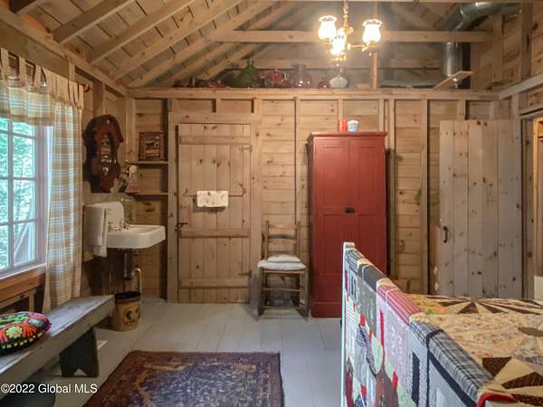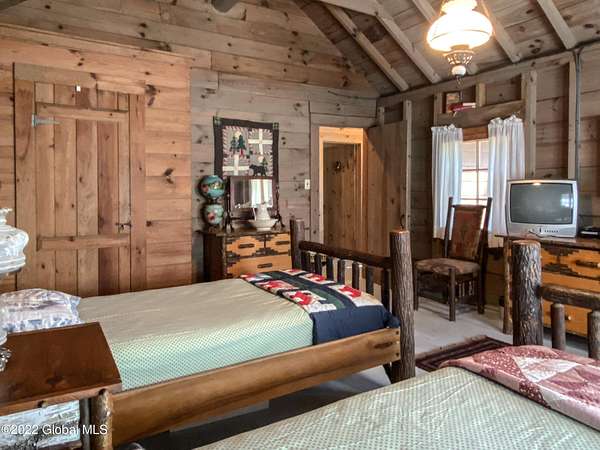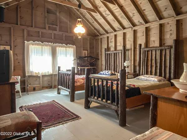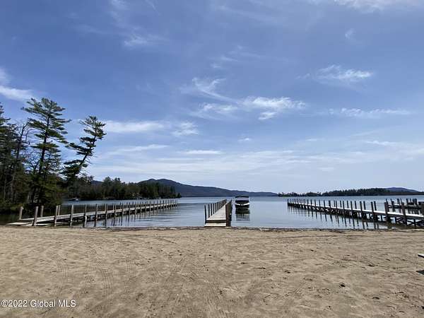 RUSTIC ADIRONDACK HOME with Beach rights and deeded lake access on Lake George with 22' dock space in Basin Bay. Situated in Bolton, this home features plenty of privacy. A 2,000sf year-round home with 5 Bedrooms, 3 Bathrooms nestled within an association on 1.7 acres of wooded privacy with a path to access the lake. Great room with stone wood burning fireplace, large enclosed porch, an eat-in kitchen with built-in shelving and laundry/utility room. Includes a detached 2 Car garage and 2 gazebos (both have electric.) Convenient to the Town of Bolton for enjoying entertainment and dining. HOA 22' dock space.