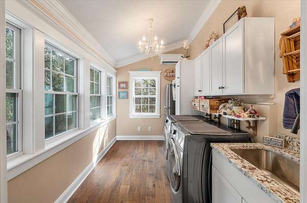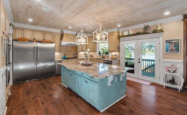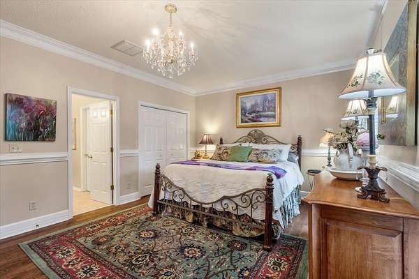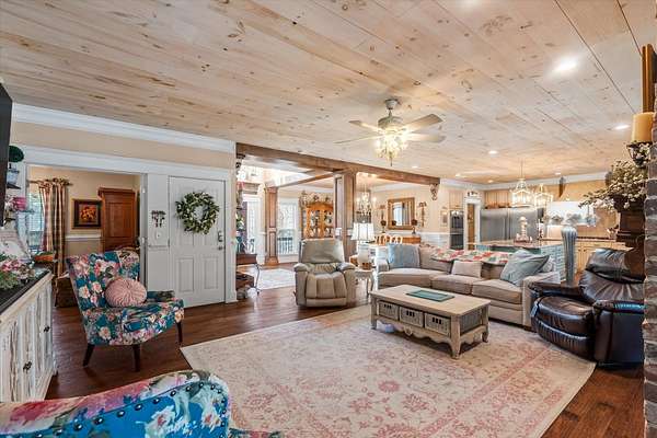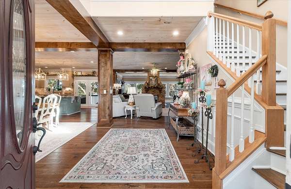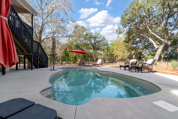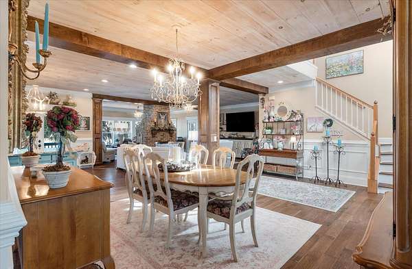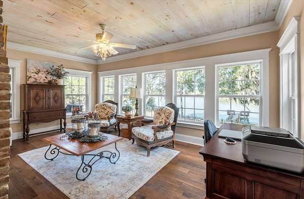 LAKEFRONT - SALTWATER POOL! Privately nestled on a 1.8-acre lot along the peaceful shores of Flounder Lake, 4484 Lord Proprietors Road is a stunning 3,335-square-foot elevated home with a rare blend of refined craftsmanship, thoughtful improvements, and authentic Lowcountry living within the gated community of Belle Vista Plantation. . Located just around the corner from Meggett Town Hall and the historic SC Produce Association Building, residents enjoy a truly close-knit community with year-round gatherings hosted by the Mayor and his team, including the beloved annual Christmas tree lighting that feels straight out of a Norman Rockwell painting. Despite the serene setting, the home is conveniently located near many popular hotspots. It's a short 30 minute drive to Edisto Beach,20 mins from the shops of West Ashley Circle, and only 40 minutes from Downtown Charleston, creating an opportunity to enjoy the best of both worlds - a quieter and slower lifestyle found in a country setting while still within close proximity to all that the beaches, city, and suburbs have to offer. Built in 2004 and meticulously maintained, the home welcomes you with a stunning two-story foyer that leads to open-concept living spaces designed for both everyday comfort and entertaining. The main level is highlighted by custom wood plank ceilings with a designer white wash finish, adding warmth and architectural character, paired with gorgeous hardwood flooring throughout the living areas of the first floor. The gourmet kitchen serves as the heart of the home, featuring an oversized center island, granite countertops, custom cabinetry, stainless appliances, and an exceptionally large walk-in pantry. There is access to the back deck from the kitchen making an ideal flow for when outdoor grilling is desired. The kitchen opens seamlessly to the formal dining room and the family room, where a double-sided brick gas fireplace creates a cozy focal point shared with a light filled sunrooman inviting space surrounded by windows and peaceful lake views. The primary suite is located on the main level, offering privacy and convenience, and includes two closets - one a walk-in, and a spacious ensuite bath with a double vanity and generous counter space. A guest half bath is also located on the main level as well as the laundry room which is thoughtfully designed including granite countertops, a utility sink, ample cabinetry, and additional refrigeration storage. You won't believe the view from the laundry room. Upstairs, the home features four additional bedrooms - three of which have walk-in closets, two full baths, a spacious open loft at the top of the stairs ideal as a second gathering room. The loft and adjacent bedroom are currently used for the homeowners' quilting business. Outdoor living is equally impressive, with a heated saltwater swimming pool framed by cement decking installed in 2021, all overlooking Flounder Lake and a private dock. A paddle boat and inflatable kayak/canoe convey, offering immediate access to relaxed days on the water. The backyard fencing was added in 2022, and the property provides generous space for boats, RVs, and other recreational vehicles. The drive-under garage has the second half bath and accommodates up to four vehicles, complemented by a long winding driveway and additional parking areas. Major improvements include a Generac whole-house generator, a 1,000-gallon LP tank, and a Rinnai tankless water heater, all installed in 2021, with a hot water recirculation system added in 2024. A lower-level 2.5-ton HVAC system with UV light was added in 2022, and in 2025 a whole-house surge protector was installed in the garage and dehumidifier installed in the attic further enhancing comfort and efficiency. Attention to detail and pride in ownership is evident at every turn of this impressive and unique property. With an acceptable purchase contract, the John Deere zero-turn mower, laundry room washer, dryer, refrigerator, one garag