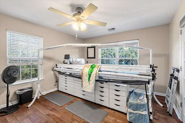 - Ceiling Fan(s), Entrance Foyer, Family, High Ceilings, Kitchen Island, Loft, Separate Dining, Smooth Ceiling, Sun, Walk-In Closet(s)
