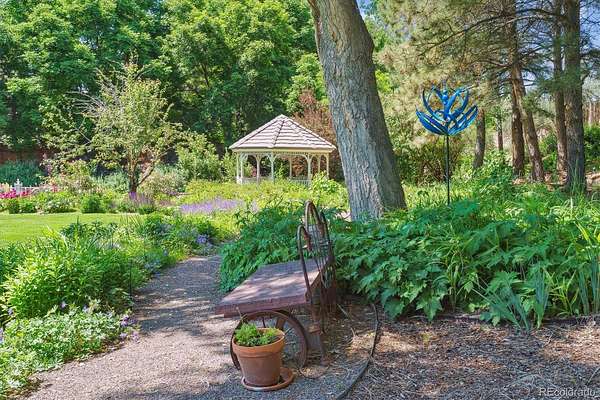 Set within an exclusive five home custom enclave “Cottonwood Meadows,” with access to a community pond. This distinguished 5-bedroom, 4.5 bath residence offers refined living on a serene 1.56-acre property with valuable irrigation water rights and greenhouse. Thoughtfully reimagined with extensive high-end updates, the home blends timeless craftsmanship with modern sophistication. The main level showcases an elegant primary suite featuring a beautifully remodeled spa inspired bath (no stairs required). The main level also has additional bedroom and full bath for multigenerational living. Rich plank flooring and a dramatic stacked stone fireplace anchor the main living spaces, creating a warm yet elevated atmosphere ideal for both everyday living and upscale entertaining. The main level also includes two home offices both with great lighting and one that overlooks the spacious back yard. A bonus walk out lower level extends the home’s livability, opening to a private patio framed by mature landscaping. At the rear of the property, a newly installed stamped concrete terrace and tranquil water feature with a Koi pond that creates a resort style outdoor retreat perfect for gatherings or quiet relaxation. From the moment you step into the backyard, you will feel the serenity of a true garden oasis. Eight raised garden beds, a temperature-regulated greenhouse, and a master-planned sprinkler system make this a dream environment for both seasoned and aspiring gardeners. Follow the winding garden pathway and discover a series of unique outdoor spaces, each planted with mature perennials that bloom in succession from spring through fall. The oversized three car attached garage, finished with a sleek epoxy floor, offers exceptional storage and workspace. Every detail reflects quality and care, resulting in a residence that feels both luxurious and inviting. A rare opportunity to own a home in a private, custom setting where comfort and natural beauty come together seamlessly.