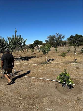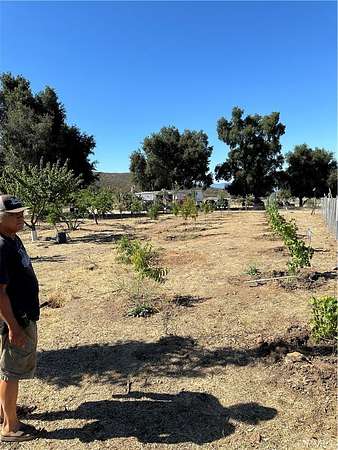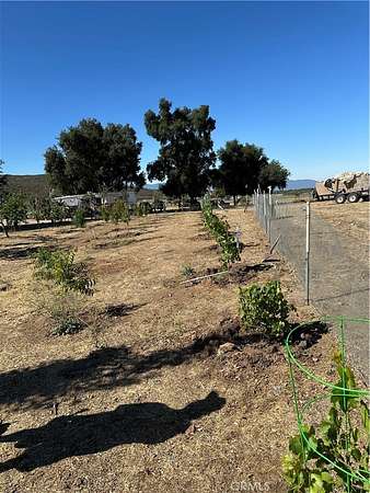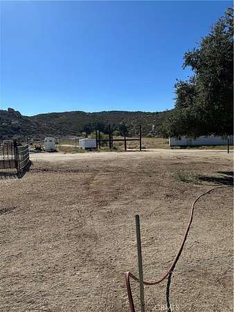 Flat to very gentle rolling 21.52 acre with horse facilities already set up, has 3/8 of a mile unraveled horse exercise round horse track, family fruit orchard with 80 trees which include Pear trees, Nectarine Trees, Lemon Trees, Peach Trees, Pomegranate Boshes, Crape Vines, ect. Loaded with 18 oak trees, has out door kitchen, multiple pens for animals & horses, seller will consider leaving his travel trailer for an additional price. Has huge well with 5000 gallon holding tank, power, septic, need cell phone. Parcel is located between Temecula & Hemet, and only a few short minutes to shopping in either city. Close to Diamond Valley Lake, Lake Skinner, Vail Lake, Pechanga or Soboba Casino, just outside Temecula Valley Vineyards and Wineries, only 7 miles to Dominogoni Parkway which takes you to Winchester Highway 79, 215 Freeway, 15 Freeway, and also close to Winchester, Menifee, Murrieta, Aguanga, San Diego & Los Angels are close also.