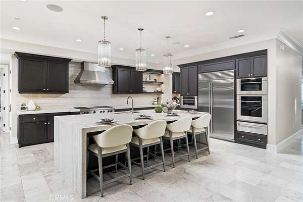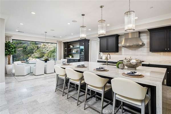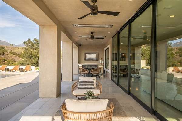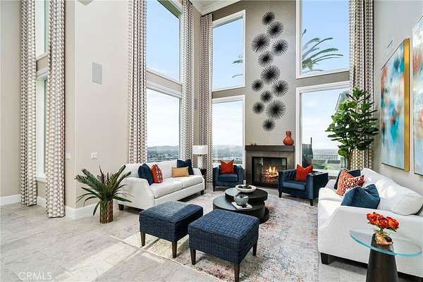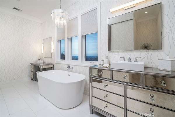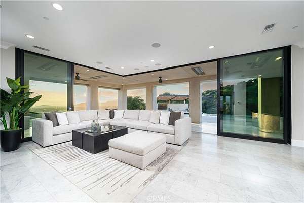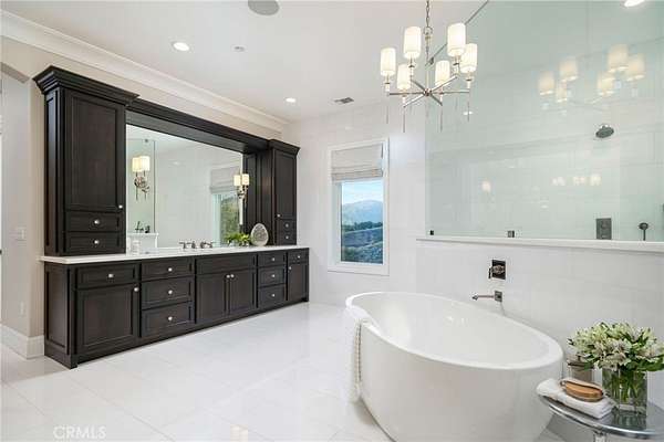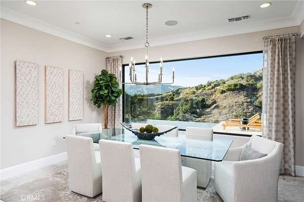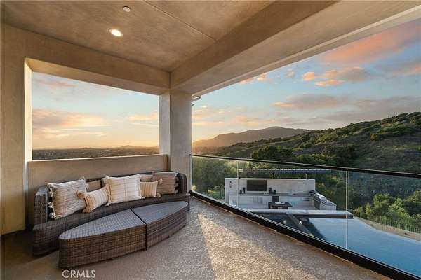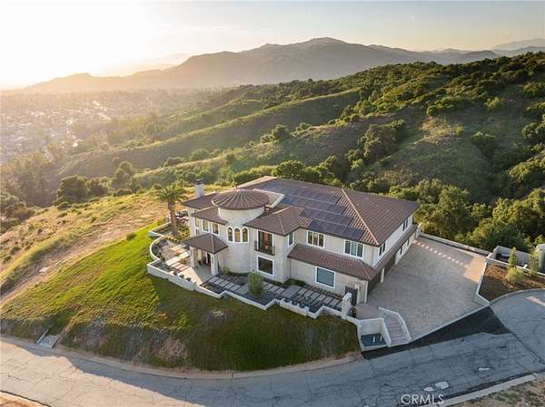 Nestled in the exclusive, gated community of Saddleback Crest Estates, this 2019 custom-built estate offers the ultimate in privacy, luxury, and breathtaking views. Perched high on a hillside, the home boasts panoramic vistas of downtown Los Angeles, the San Gabriel Valley, and the surrounding mountains. As you step through the double door entry, you're welcomed into a grand formal entry and living room featuring soaring 2-story ceilings, a beautiful fireplace, a dramatic spiral iron staircase, and incredible views. The family/great room is designed for seamless indoor-outdoor living, w/37' retractable glass doors framing the spectacular city lights & pool views. A cozy gas fireplace, glass-enclosed courtyard w/a soothing fountain, and a spacious seating area create an atmosphere of relaxation and sophistication. The chef-inspired kitchen is a dream, w/a large center island, stained cabinetry, quartzite counters, Wolf stainless appliances, built-in refrigerator, coffee bar, and custom walk-in pantry. The dining area is perfect for evening meals, w/custom built-in China cabinetry. Work from home in style in the private office, featuring built-in shelves and cabinetry. A spacious guest suite w/an en-suite bathroom and direct access to the pool area is also on the main level, along w/a powder room. Upstairs, the luxurious primary suite is a serene retreat w/an open beam ceiling, a private balcony w/breathtaking views, and a cozy fireplace. His & hers walk-in closets, a refreshment area w/Sub-Zero refrigerator, and lighting. The spa-like primary bath offers two separate vanities, an oversized soaking tub, and a walk-in shower w/multiple shower heads. A children's family room w/built-in desks provides the perfect space for play and study. The upper floor also features two additional bedroom suites, a fifth bedroom ideal for a gym, an extra powder room, and a dedicated laundry room. Step outside to your own private oasis, where the infinity-edge pool and oversized spa w/swim-up counter and Baja shelf are designed for relaxation and entertainment. The covered patio features a beverage counter w/refrigerator & ice maker, while the California room w/electronic shades offers a perfect spot for lazy afternoons. A fire pit & stunning fountain complete the outdoor space, while a cabana w/built-in BBQ, sink, warming drawer, and refrigerator provides the ultimate in outdoor dining and entertaining. The home also includes a 4-car attached garage and spacious driveway.