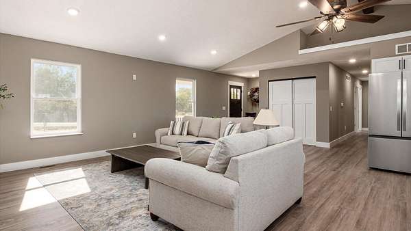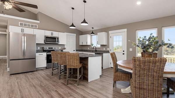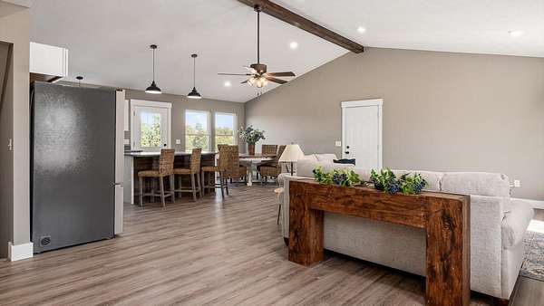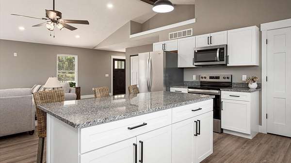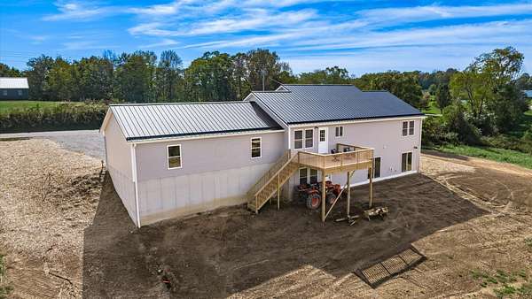 Experience the tranquility of country living in this brand-new, custom-built ranch home by Jude Custom Homes, nestled on 5 beautiful acres. This home is a perfect blend of peaceful rural life and modern convenience. Step inside and be captivated by the open-concept design. The main level offers three spacious bedrooms and two full bathrooms. The great room features vaulted ceilings, creating an airy and expansive feel. The kitchen is a true centerpiece, boasting a large center island, a pantry, white cabinets, granite countertops and top-of-the-line stainless steel appliances. From the kitchen, a large deck awaits, providing the perfect spot to enjoy your morning coffee and take in the serene views of your property. The walk-out lower level extends your living space and is designed for both relaxation and entertainment. A cozy family room, complete with a gas log fireplace, provides a warm and inviting atmosphere. Sliding glass doors lead directly out to your stunning acreage. The lower level also features a versatile room that can serve as a fourth bedroom, an in-law suite, or a spacious home office, complete with a full bathroom. Beyond the home, the 5-acre lot offers endless possibilities. It's the ideal canvas for a future pond, a large outbuilding, or a garden. A spacious three-car garage provides plenty of room for vehicles, a tractor, or other recreational gear. This property truly offers the best of both worlds-the quiet escape of country living with easy access to I-70, making for a stress-free commute to Zanesville or Columbus. Don't miss your chance to own this slice of paradise.