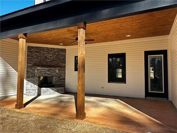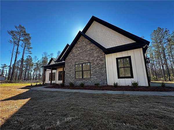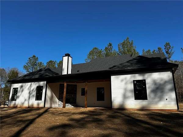 Experience the perfect mix of modern comfort and thoughtful design in this beautiful new construction home on 3.07 acres! Featuring 4 bedrooms and 3 bathrooms, this home offers a spacious open layout with durable LVP flooring throughout the main living areas. The kitchen stands out with granite countertops, custom shaker-style cabinetry, a generous center island, and a walk-in pantry, all flowing seamlessly into the inviting great room. Enjoy cozy evenings by the electric fireplace inside or step out to the covered back patio, complete with a wood-burning corner fireplace - perfect for relaxing or entertaining. The owner's suite, tucked conveniently off the kitchen, provides a peaceful escape with dual vanities, a tiled walk-in shower, large soaking tub, and a massive walk-in closet with direct access to the laundry room for added convenience. Built with quality in mind, this home includes spray foam insulation and Hardiplank with stone accents for lasting efficiency and curb appeal. Buyers still have the opportunity to personalize their finishes within the builder's available selections, offering the perfect chance to make this home truly your own!