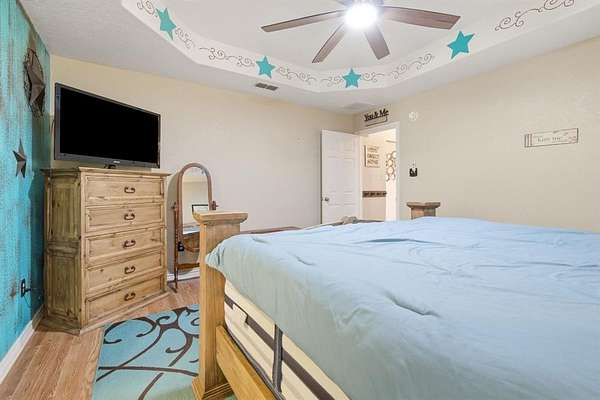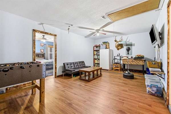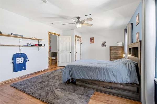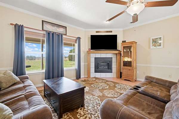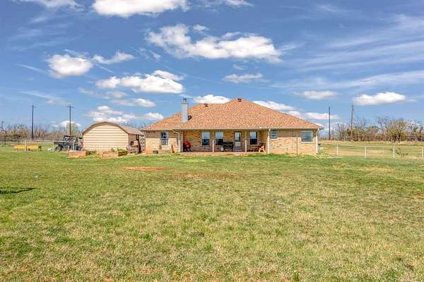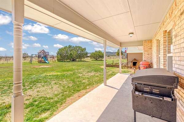 Welcome to this charming country retreat in Jim Ned ISD! Nestled on nearly 2 acres outside city limits, this 4 bedroom, 2 bath home offers the space, privacy, and functionality that rural living is all about. Step inside to find warm Saltillo tile flowing throughout the main living areas, anchored by a cozy wood burning fireplace in the living room. The large kitchen is a true gathering spot, featuring a breakfast bar, kitchen island, and a dedicated dining area, with plenty of room for meals and entertaining alike. The split bedroom layout offers privacy for everyone. Each guest bedroom is generously sized with great closet space, while the spacious primary suite impresses with a tray ceiling, dual sinks, a corner jetted tub, a separate shower, and double walk-in closets. A dedicated laundry room with extra storage and a folding counter adds everyday convenience. The 4th bedroom and game room are housed in the thoughtfully converted original garage, giving the home incredible flexibility for guests, hobbies, or a home office setup. Outside, the property truly shines. A pipe fenced perimeter with electric gate, 24x27 metal shop with two roll-up doors, a man door, and electricity, plus an attached 2 car carport, make this a dream for anyone needing serious workspace or storage. The expansive backyard features two garden beds and a storage building, offering room to roam, grow, and create. Country living, quality home, and room to make it your own, come see it for yourself!